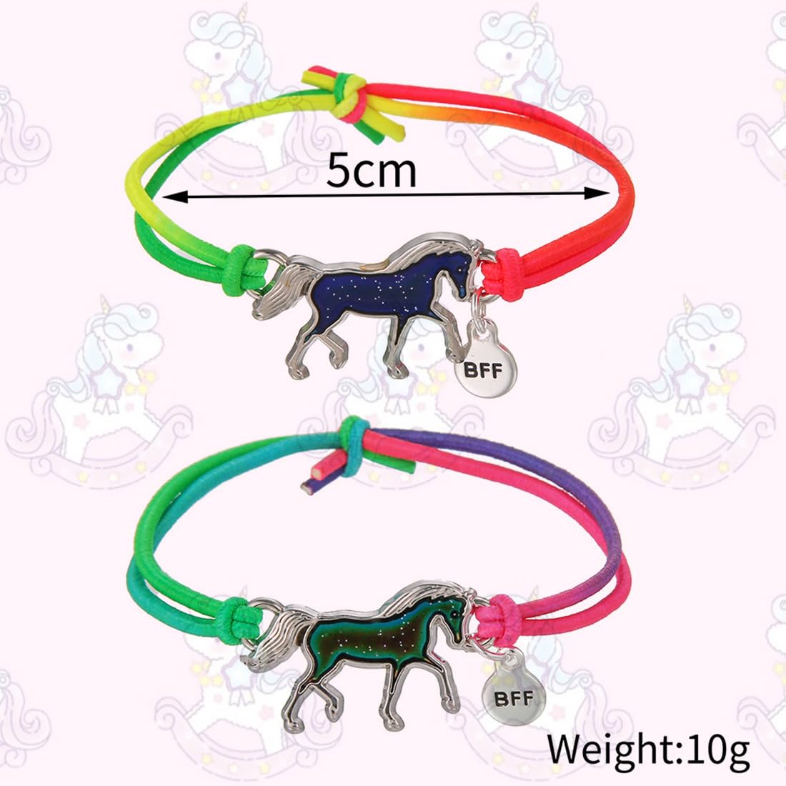 Portez-les fièrement lors de diverses occasions pour illuminer votre tenue. Offrez-les comme cadeau ludique pour une expérience mémorable. Bracelet D'amitié Lot De 2 Bracelets Chevaux Pour Enfants - Bracelet D'ambiance Avec Changement De Couleur Arc-en-ciel - Bracelet Pour Les Fans De Chevaux - Idu00e9al Comme Cadeau/petit Cadeau Pour Anniversaire D'enfant Parfaits pour les fêtes d'anniversaire, les jeux de rôle ou les cadeaux d'amitié. 🎁【Amicaux et Durables】 Fabriqués en alliage de zinc plaqué et cordon ciré, ils sont doux sur la peau, légers et robustes. Bracelet personnalisé amitié à gravure Les amis c'est magique 👧【Adaptés à Toutes les Occasions】 Idéaux pour les fêtes, les jeux de rôle, les événements festifs, Pâques, la Saint-Valentin et bien plus encore. Ils sont faciles à porter et vous rendent plus sophistiqué lorsqu’ils sont portés. Sur notre e-shop Histoire d’Or, vous trouverez un très grand choix de bracelets pour enfant en or ou en argent. Différents styles sont à votre disposition
