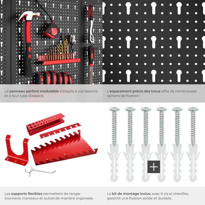 CIOUYAOS Lot de 16 rangement outils bricolage pour panneau perforé Rangement Panneau Perforé FRIMOONY Porte-outils De Crochets Pour Panneaux Perforés Avec Bacs, Verrous à Chevilles, Pour Organiser Divers Outils, 80 Pièces En Destockage Et Reconditionné Chez Panneau Bois Largement utilisé : gardez toutes vos petites pièces telles que le matériel, les vis, les clips, les rubans à mesurer propres. Description du produit Vous recevrez 10 boîtes de plaques noires avec crochets et étiquettes en métal. Conception à coins arrondis pour protéger vos mains contre les blessures., Comment utiliser? 1., Retirez la boîte en plastique et le crochet., 2., Insérez le crochet dans la boîte en plastique., 3., Ensuite, placez les deux extrémités du crochet dans la plaque à clous. Bacs à becs | Panneaux perforés et à fentes | Axess Industries Design neuf : plus grand et plus beau, le design des coins arrondis protégera vos mains contre les blessures. Crochets pour panneaux perfore Convient pour les panneaux perforés standard de tout matériau : s'adapte à tous les panneaux perforés en métal, en bois ou en plastique avec un diamètre de trou de 0,6 cm à 6,35 mm avec des trous espacés de 2,5 cm. L'étiquette auto - adhésive incluse peut vous aider à trouver facilement ce que vous cherchez.