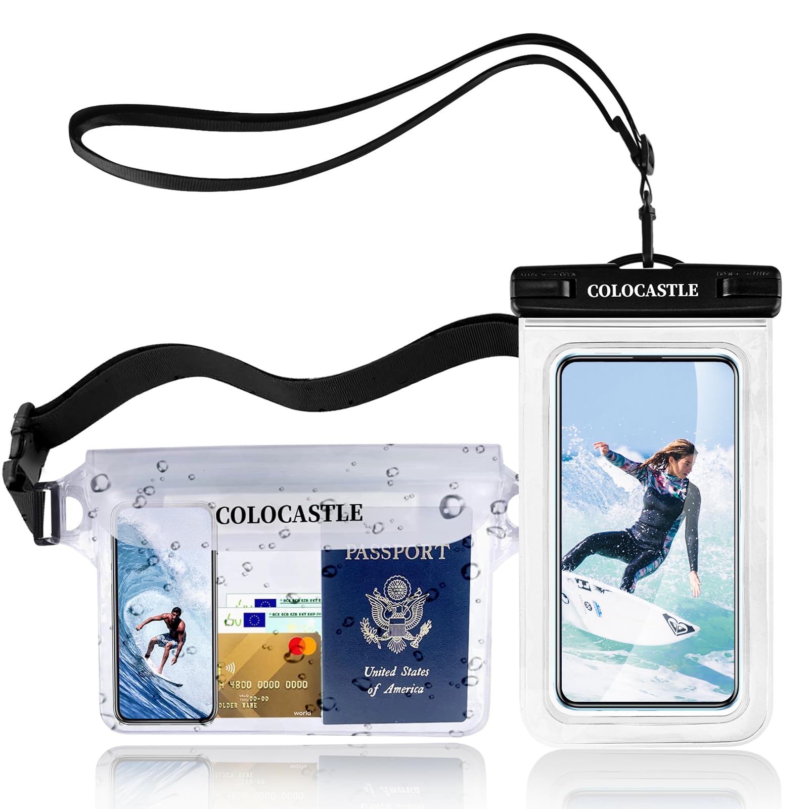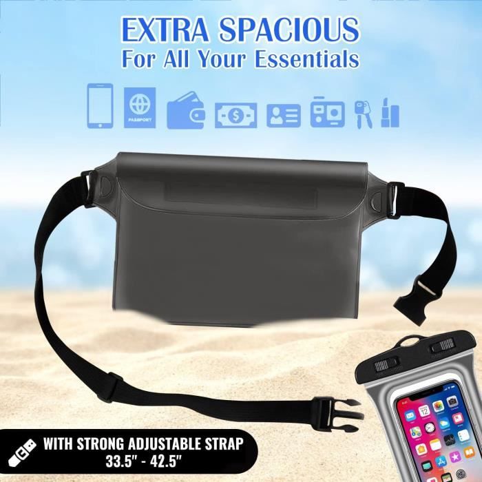 Matériaux Haut de Gamme : La pochette étanche pour plage est fabriquée en PVC transparent et durable, dense et résistant à la déformation. Parmi les exemples : parcs aquatiques, piscines, plages, kayak, jogging, saunas, rafting, plongée, ski, randonnée et toutes les activités impliquant de l'eau, du sable, de la boue, de la neige et de la poussière Spécifications du produit :Matériau : PVC Dimensions : 22 x 16cm Couleur : Noir Contenu :2 x Sacoches Étanches Service clientSi le produit que vous avez reçu est inutilisable, endommagé ou si vous n'êtes pas satisfait, veuillez nous contacter. Elle est dotée d'une fermeture éclair étanche et scellée et d'un système de protection étanche pour une étanchéité exceptionnelle Dotée d'une sangle ajustable et sécurisée, cette pochette est disponible dans des couleurs élégantes assorties à votre équipement de plein air, pour une meilleure visibilité en mer Conception Tactile : Le sac étanche pour plage est compatible avec l'écran tactile. Étui Étanche Pour Téléphone Portable, Pochette Sèche Pour Téléphone À... Pochette étanche 3 pièces - 123 - Pour téléphone portable - Sangle Grande Capacité et Étanchéité : La pochette étanche pour téléphone est suffisamment spacieuse (22cm x 16cm) pour contenir tous vos petits objets essentiels, tels que votre téléphone, votre argent, vos clés, votre montre, votre carte d'identité, etc. Elle est idéale pour le ski, la pêche, la natation et le kayak, ainsi que pour les déplacements quotidiens, le jogging et la randonnée Polyvalente : La pochette étanche pour téléphone est idéale pour les activités de plein air comme le bateau, la natation, la plongée avec tuba, le kayak, la pêche, la plongée sous-marine, la randonnée et le camping. Ceinture a Justable : La sacoche étanche pour plage est unisexe et s'adapte à différents tours de taille. Poche Etanche Telephone COLOCASTLE Pochette Etanche Smartphone, Sac Etanche Telephone Portable Etui Pochette Imperméable Avec Sangle Réglable, IPX8 Plage Accessoire Pour Nage Pêche Kayak Natation Rafting Surf Coque Telephone Eau Matériel de PVC de haute qualité, assure à 100% l'imperméabilité du sac face à l'eau et au sable. La pochette étanche est idéal pour plage, piscine, parcs aquatiques, sports nautiques, navigation de plaisance et pêche etc Profitez de votre aventure sans craindre le vol de vos objets de valeur. La pochette étanche est dotée d'une fermeture éclair étanche et d'un système de protection pour une excellente étanchéité Applications :Le sac étanche convient à toutes les activités intérieures et extérieures. Protégez votre vie privée La triple fermeture étanche et la partie supérieure robuste du sac étanche nautique assurent une étanchéité parfaite, protégeant efficacement votre téléphone et vos objets de valeur en toute sécurité et au sec 2., La pochette étanche mesure 22cm x 16cm, offrant un espace généreux pour tous vos petits objets, tels que votre téléphone, votre argent liquide, vos clés, votre montre, votre carte d'identité, etc. Pendant vos activités nautiques, vous n'aurez plus à craindre que votre téléphone, votre argent, autres effets personnels ne soient mouillés Vous pouvez porter votre pochette étanche pour smartphone en l'accrochant à l'épaule, à la taille ou à la poitrine pour un transport facile.
