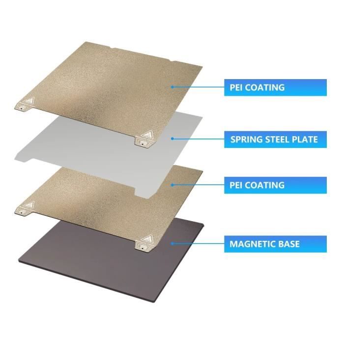 Collage facile : le modèle peut être imprimé directement sur le panneau PEI lorsque la température du foyer est d'environ 60 °C, pas besoin de colle ou d'autres outils pour aider à coller au panneau. Liste des paquets : 1 x plaque d'acier à ressort 1 x plaque adhésive magnétique Remarque : Faites attention au bon fonctionnement. Grande taille : cette plaque d'acier à ressort flexible mesure 150 mm de longueur et de largeur, offre un grand espace de travail, rendant l' plus facile et plus efficace. YIC Ensemble De Plate-Forme En Acier Flexible Pei Plate-Forme D Retrait facile : les pièces d' se décollent facilement lorsque la température du foyer atteint la température ambiante, et une flexion douce aidera à les retirer plus facilement. Fafeicy Plaque De Lit PEI En Acier à Ressort Flexible 150 X 150 Mm, Lit D' Magnétique Pour Imprimante 3D, Se Décolle Facilement, Bonne Stabilité Avec 0,4 mm/0,02 poucesCôté PET : env Plaque Lit Pei Magnétique 150x150mm YOSOO Plaque De Lit PEI En Acier à Ressort Plaque D'Acier Flexible 180x180mm Plate-forme De Lit Décollage Facile Modèle Impression 3D Il existe aujourd'hui de nombreux modèles de plateaux d'impression : plaques de verre, plateaux PEI et plaques d'acier magnétiques ne sont que quelques-unes des nombreuses options avec lesquelles vous pouvez équiper votre imprimante 3D