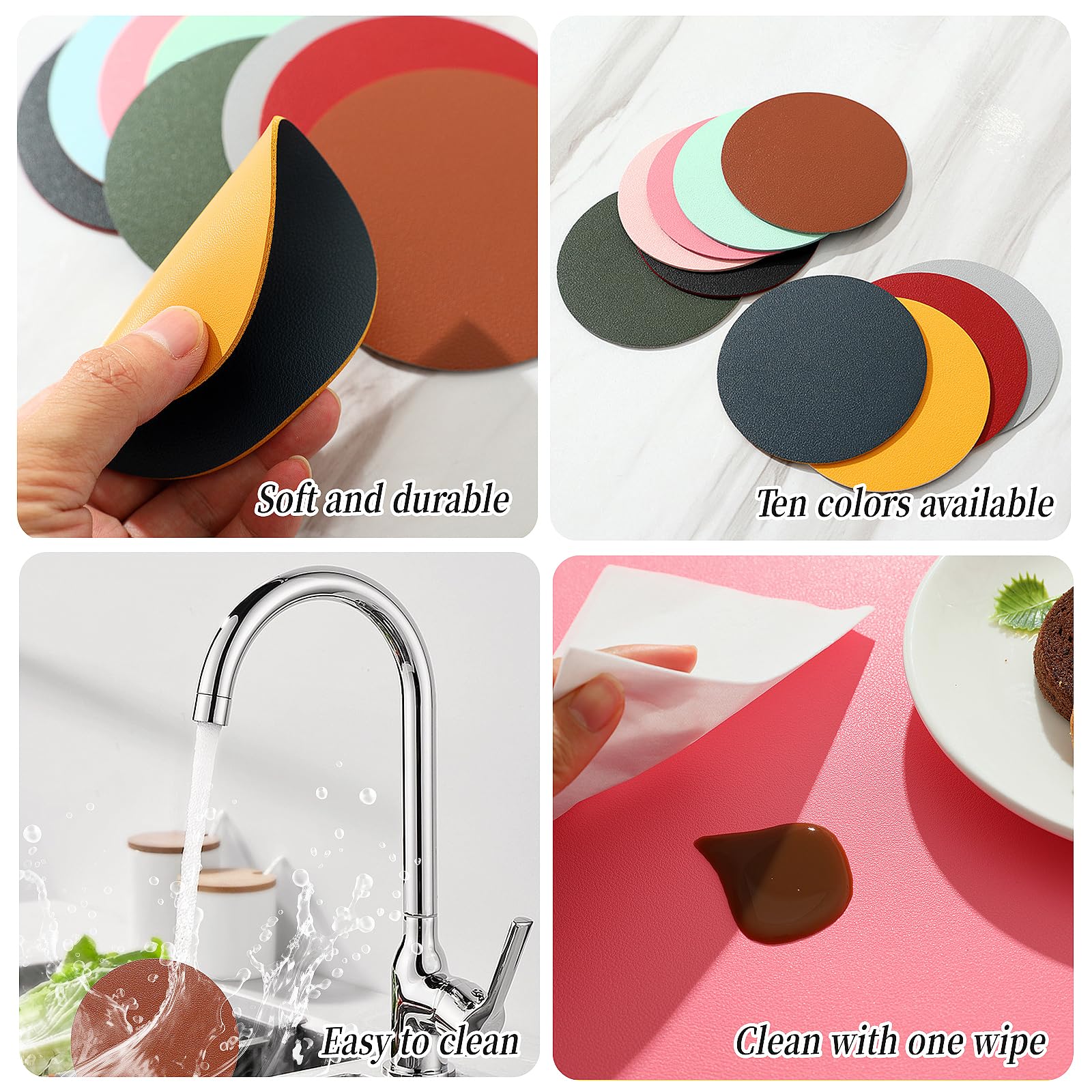 Design élégant : dessous de verre double face de différentes couleurs, vous pouvez changer la couleur à tout moment, vous pouvez les rendre adaptés à différentes occasions. Découvrez nos dessous de verres et dessous de plats, conçus pour protéger vos surfaces tout en ajoutant une touche de style à votre table Lot de 10 dessous de verre en cuir - Double face - Antidérapants - Pour tasses à café et tasses en verre - 10 cm (10 couleurs) Informations sur le produit : Dimensions du produit : 10 x 10 x 0,2 cm. Avec ce set de dessous de verre en verre, vous protégez les surfaces contre la graisse et les taches d'eau, les dommages causés par la chaleur ou les rayures. Il suffit de l'essuyer avec un chiffon humide pour un entretien sans effort. Matériau de qualité supérieure : la surface des dessous de verre est dotée d'un revêtement antidérapant spécial qui rend non seulement le motif texturé plus vif et beau, mais présente également une forte adhérence tout en étant résistant à l'eau et à la saleté Les coutures des dessous de verre sont traitées avec une bande d'étanchéité qui est durable et empêche la saleté de pénétrer. Dessous de verre | Vert d'eau Linhas - Céramique peinte à la main Plus de glissement, quelle que soit la surface. Poids du produit : 8,4 g Matériau : cuir synthétique Le paquet comprend : 10 pièces de dessous de verre en cuir (10 couleurs) Nos dessous de verre double face sont disponibles en différentes couleurs, de sorte que vous pouvez changer de couleur à tout moment. Ils sont parfaits pour les boissons chaudes et froides comme le café, la bière, le lait, les cocktails, le jus et le whisky. Ronds, carrés, à motifs ou très sobres, les dessous de verre sont indispensables pour un apéritif ou un repas sous le signe de l’élégance. Objet pratique et malin, il permet de protéger la table sur laquelle vous posez votre verre Dessous élégant Pour Tasses Verres Chitomars Dessous De Verre En Cuir Lot De 12, Double Face Lavable Set Dessous De Verre Lavable Facile Avec une hauteur de 1 mm et un diamètre de 10 cm, nos dessous de verre s'adaptent à la plupart des verres, tasses, gobelets et bouteilles de bière.