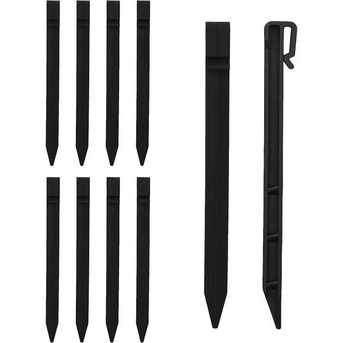 Ces piquets d'ancrage Meision sont ultra pratiques pour fixer vos bordures de pelouse ou petits tuyaux d'arrosage ! Lot de 20, en plastique robuste noir, longueur 25cm Il est universel pour fixer une bande de bordure de pelouse, un petit tuyau d'irrigation, etc. Piquets Ancrage Pelouse Piquets Ancrage Jardin SLDHFE Lot De 50 Piquets D'Ancrage Jardin 25,4cm - Bordures Paysage, Tentes Et Plantes - Plastique Résistant Bordure Jardin Exterieur Clou Gazon Synthétique Caractéristiques du produit : 1., La couleur est vert/Anthracite, plus résistante à la saleté., 2., Avec baïonnette pour fixer la bordure de gazon., 3., Longueur moyenne, n'affecte pas le travail de tonte. 【Outils adaptables pour bordures de gazon】un lot de 20 piquets pour fixer des bandes de bordure de pelouse ou fixer les lignes de délimitation des robots tondeuses à gazon, un outil indispensable pour tous ceux qui doivent créer des bordures de pelouse ou des bandes de délimitation pour les parterres de fleurs. La pointe du crochet est dirigée vers le bas, de sorte qu'il est facile de le fixer au sol. Bordure pelouse plastique hauteur 20 cm Lg 9 m VOUNOT® Bordure de Jardin en Plastique 20 mètres avec 60 Piquets d 【Taille appropriée】le clou en plastique a une longueur totale de 25 à 30 cm, une largeur de 2 cm sur le côté long, 1,3 cm sur le côté court et une largeur de baïonnette de 0,7 cm. La profondeur d'insertion du clou en plastique dans le sol peut être déterminée en fonction de vos besoins pour obtenir l'effet de fixation. Contenu de la livraison : 20 clous en plastique.