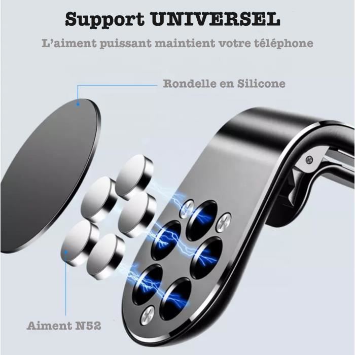 Un outil discret mais puissant au quotidien. Que vous utilisiez un appareil doté de la fonction de fixation magnétique ou un smartphone classique, votre téléphone reste parfaitement en place dans toutes les conditions. Compatibilité universelle – tous types de smartphonesCe support magnétique est compatible avec les appareils dotés d’une surface magnétique circulaire ainsi qu’avec les smartphones traditionnels. Compatibilité universelle, appareils et autres smartphones inclus :Compatible avec tous les appareils équipés de la technologie , ce support voiture est fourni avec un anneau magnétique pour les téléphones non. Chaque ajustement est fluide et précis pour un confort maximal. Support Téléphone Voiture Universel – Ventouse 360° – NEOVA FRANCE Idéal pour maintenir solidement tout smartphone même sur routes cahoteuses ou en cas de freinage brusque. Positionnez votre téléphone en mode portrait ou paysage en un instant. Ce support de voiture magnétique universel fonctionne avec les iPhones, les téléphones Android, les téléphones BlackBerry et les téléphones Windows! Quelle que soit la taille ou le modèle, notre support magnétique le maintiendra en place Suport Telephone Voiture Magsafe ULANZI Support Telephone Voiture, Porte Telephone Voiture, Support Ventouse Pare-brise Rotation 360 Utilisation polyvalente – au-delà de la voitureCe support magnétique n’est pas seulement destiné à la conduite. Ventouse renforcée – stabilité assuréeGrâce à sa ventouse rotative haute performance, le support peut être solidement fixé sur le pare-brise, tableau de bord ou toute surface lisse. Le Lot de 2 Support Téléphone Voiture Magnétique permet une rotation à 360° pour un ajustement facile de l'angle de vue. Grâce à sa conception robuste et à ses 8 aimants puissants, ce support maintient votre téléphone en toute sécurité, même sur des routes accidentées, sans interférer avec le signal de votre appareil Double articulation – visibilité parfaiteSon bras métallique réglable permet une rotation horizontale à 360° et verticale à 210°, assurant un angle de vue optimal selon vos besoins : navigation GPS, appels mains libres ou utilisation multimédia. 17 Aimants N52 ultra-puissants, maintien ferme en toute circonstance:Doté de 17 aimants N52, ce support téléphone voiture magnétique offre une force d’adhérence exceptionnelle. Puissance magnétique exceptionnelle – 17 aimants N52Contrairement aux modèles standards, ce support intègre 17 aimants N52 ultra-puissants assurant une force d’adhérence exceptionnelle. Polyvalent et portable, utilisation dans voiture, maison ou bureau:Ce support téléphone magnétique ventouse est compact, léger et facile à transporter.