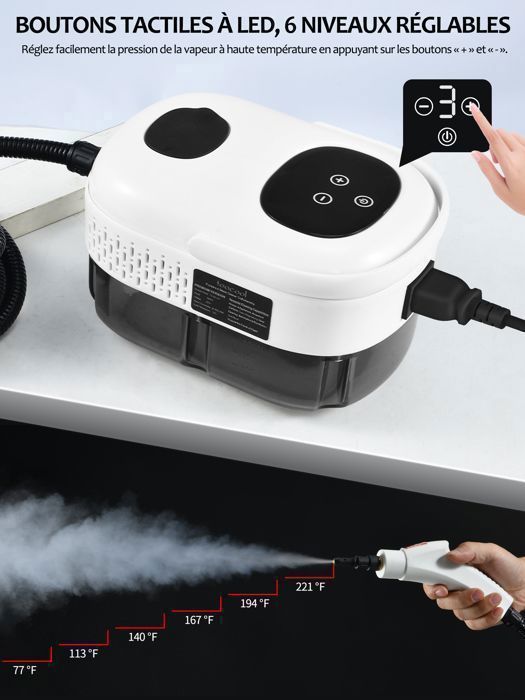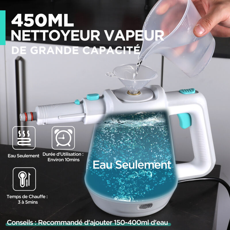 Facile à utiliser et portable : équipé d'un câble d'alimentation allongé de 3 mètres, le produit est petit et facile à transporter et à ranger et convient pour un usage quotidien à la maison. Nornward Nettoyeur Vapeur Multifonction Haute Pression De 1,8L Promotion nettoyeur vapeur portable haute température Kavolet à 43,83 Nettoyage de plusieurs zones : le nettoyeur à main peut éliminer rapidement et efficacement les taches d'huile tenaces, qu'il s'agisse de la cuisine, de la salle de bain, du sol de l'armoire ou de l'intérieur de la voiture. Accessoires multifonctions : le nettoyeur vapeur portable contient 9 accessoires multifonctions : buse longue, buse de tuyau d'extension, tête de pulvérisation à main, brosse en verre, pulvérisateur incurvé, entonnoir, etc. Grande capacité et chauffage rapide : le nettoyeur vapeur prend en charge 280 ml de stockage d'eau, peut être chauffé rapidement en seulement 2 à 3 minutes et offre jusqu'à 10 à 15 minutes de nettoyage à la vapeur continu, ce qui vous permet de faire face facilement à différentes tâches de nettoyage Il peut facilement le manipuler et assure que votre environnement domestique est propre. Grande capacité et chauffage rapide : le nettoyeur vapeur prend en charge 280 ml de stockage d'eau, peut être chauffé rapidement en seulement 2 à 3 minutes et offre jusqu'à 10 à 15 minutes de nettoyage à la vapeur continu, ce qui vous permet de faire face facilement à différentes tâches de nettoyage Nettoyeur Multifonction 9 Accessoires Nettoyeurs à Vapeur Température Haute Température MOP Ménage électrique Nettoyage écologique Sans Produit