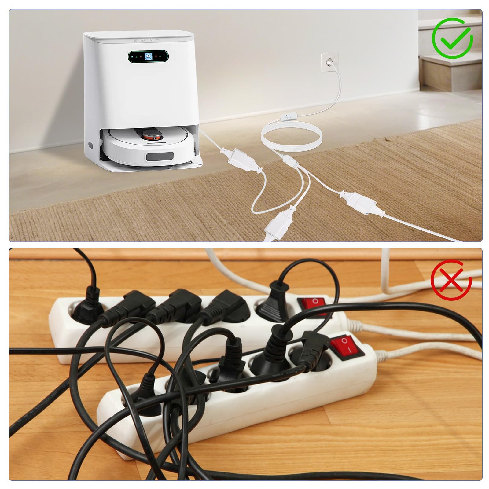 Une rallonge de câble d'alimentation peut convertir une fiche européenne de type C en une fiche européenne femelle de type C. Champ d'application : peut convertir une prise européenne de type C en prise Euro de type C Fiche Male Prise Electrique Lot De 2 Rallonges D'alimentation, Rallonge 2 En 1, Fiche Type C, Fiche Euro Vers Prise Euro, 0,75 Mm² Max. 6A/250V Pour TV PC Moniteur D'ordinateur Appareils électroménagers Rallonge d'alimentation 2 en 1, rallonge de prise européenne 0,28 M La fiche n'est pas facile à chauffer, antioxydant et résistant à la corrosion, ce qui permet de bien réduire la perte d'énergie lors du processus de transmission. Longueur du câble : 1m., Intensité maximale : 2., 5 A / 250 V., Couleur : blanc. 【Spécification】H03VV-H2-F Câble conforme. Section du câble d'extension : 2x 0,75 mm². Rallonge plate anti-surtension pour l'intérieur, barre d'alimentation plate Lot de 2 rallonges de 1 m 1., Le câble d'extension utilise un fil de cuivre de haute qualité comme conducteur, qui peut transmettre de manière plus stable., 2., La prise européenne n'est pas facile à chauffer, ce qui peut mieux réduire la perte d'énergie., 3., Une rallonge de câble d'alimentation peut convertir une prise européenne de type C en prise Euro de type C. Section transversale : 2 x 0,75 mm² Longueur du câble 1 m