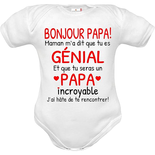 Technique : Impression de haute qualité avec des couleurs certifiées Body pour bébé garçon Je poserai mes pieds sur tes empreintes à manches courtes en jersey de coton respirant et hypoallergénique de haute qualité, conçu pour offrir un confort maximal à la peau délicate du nouveau-né, avec des impressions réalisées avec des couleurs certifiées. Idée Cadeau de naissance Corredino Neonato body nouveau né avec phrase notre première Praticité : Encolure américaine pour un habillage sans traumatisme Corredino Neonato body nouveau né fan de maman ou papa en pur coton manche courte – idée cadeau naissance – date d’anniversaire Body Bebe Personnalisé Corredino Neonato Body Et Combinaisons Nouveau Né Joyeux Anniversaire Maman Et Papa En Pur Coton - Idée Cadeau Naissance - Date D'anniversaire Body Bébé Humour Les meilleures offres pour Corredino Neonato Body Nouveau Né Joyeux Anniversaire Maman Et Papa En Pur Coton sont sur Comparez les prix et les spécificités des produits neufs et d 'occasion Pleins d 'articles en livraison gratuite