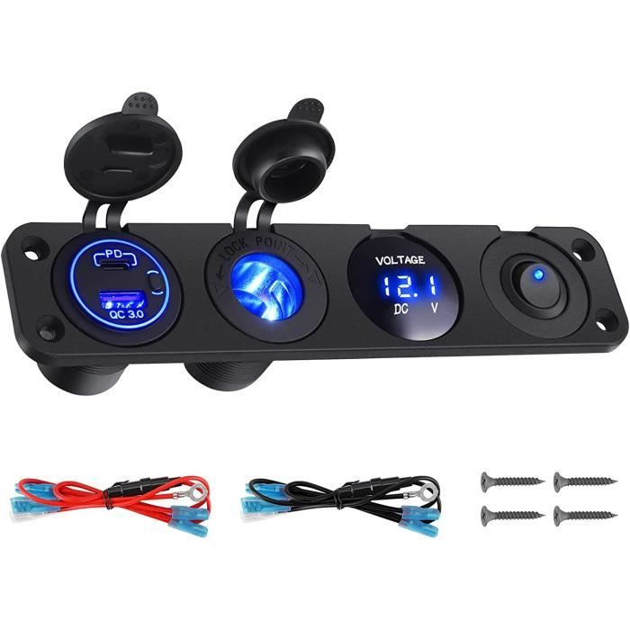 peuvent être chargés rapidement. Qu'il s'agisse de longs voyages, de séjours en camping ou d'une utilisation quotidienne dans le véhicule, les appareils électroniques peuvent être chargés n'importe où et à tout moment Prise de Chargeur USB Voiture QC3.0 et PD3.0 12V Voiture Allume Cigare Adapta... Objet neuf et intact, n'ayant jamais servi, non ouvert, vendu dans son emballage d'origine (lorsqu'il y en a un Fafeicy Répartiteur de prise allume-cigare Répartiteur allume-cigare 3... Que vous soyez en déplacement ou que vous travailliez à l'extérieur, ce répartiteur de prise vous offre une alimentation stable et efficace PANNEAU DE PRISE de Chargeur de Voiture 12V/24V QC3.0 USB,Allume-Cigare Le disjoncteur de sécurité et la surveillance de la tension garantissent une protection sûre de vous et de vos appareils Fabriqué à partir de matériaux de haute qualité, le répartiteur de prise se distingue par sa résistance à la chaleur, sa durabilité et sa protection de l'environnement., Installation facile. Chargeur Rapide PD3.0 Pour Voiture Accessoire Auto Multifonction Panneau Prises USB Linkstyle - Charge Rapide QC3.0 + USB-C + Allume-cigare | Voltmètre LED | 12V/24V Voiture Voltmètre Digital LED Répartiteur Prise Voiture 120W Prise allume cigare avec les doubles rapide ports USB QC3., 0, il prend en charge la charge rapide simultanée de deux appareils. Idéal pour les voitures, camping-cars, bateaux et autres applications. Prise de Chargeur USB Voiture est compatible avec les véhicules 12 V/24 V, y compris les voitures, camions, véhicules tout-terrain et plus encore.