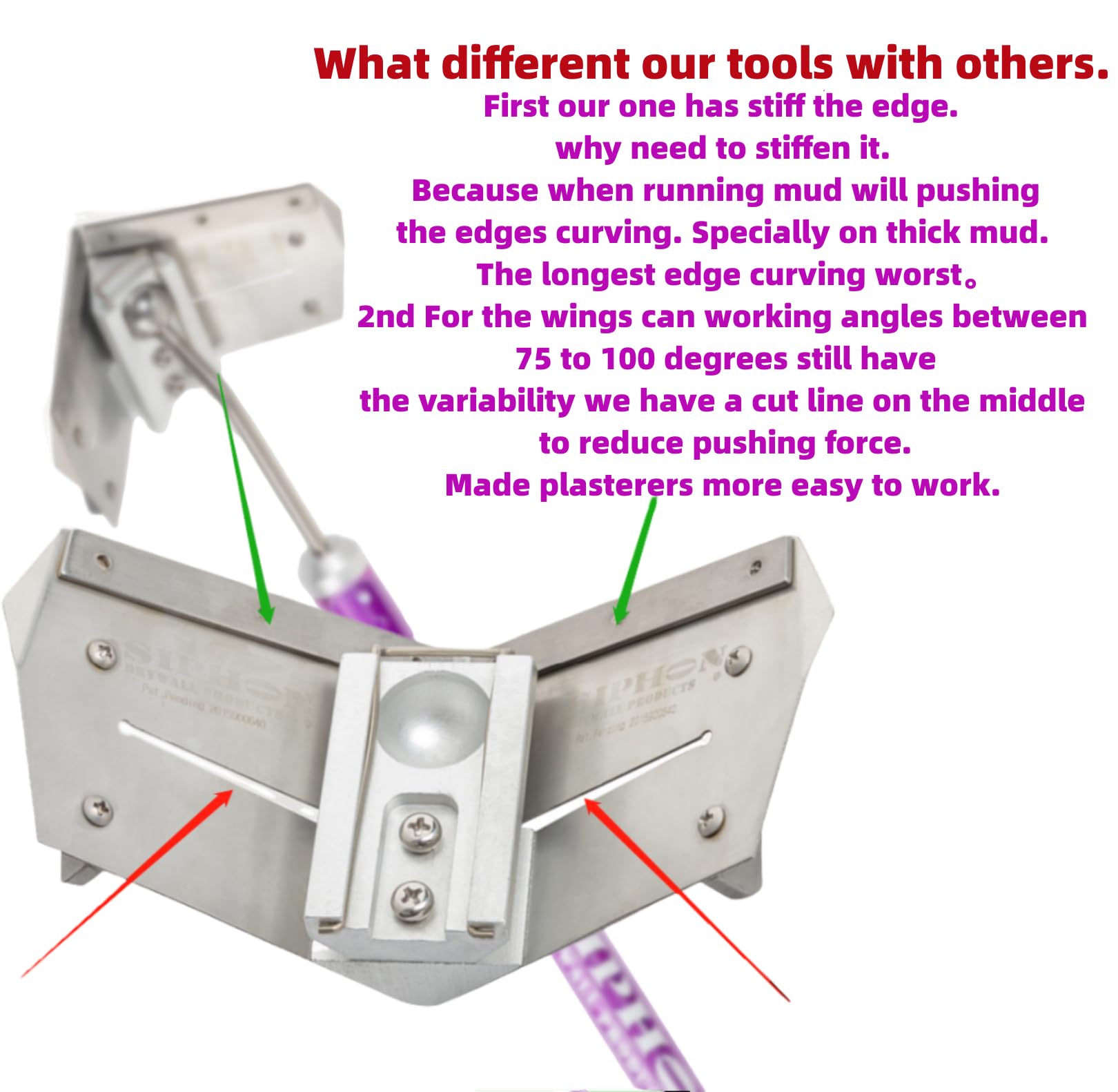 Solution de façonnage complète : la roue flexible assure un masticage et un nivellement efficaces des coins yin et yang, ce qui en fait un outil essentiel pour un travail de finition de qualité Construction durable : fabriqué à partir de matériau PP de qualité supérieure, le rouleau d'angle est léger mais résistant à la déformation pour une utilisation fiable à long terme dans des conditions exigeantes Ergonomique et portable : conçu pour tenir naturellement dans votre main, cet outil de grattage d'angle léger améliore le confort lors d'une utilisation prolongée et est facile à transporter entre les chantiers Outil Professionnel Léger Durable ToolPro Truelle D'angle Réglable – Outil Professionnel De Finition De Cloison Sèche Pour Murs Intérieurs, Plafonds Et Coins Extérieurs Rouleau Angle 360° Cloison Sèche Conception rotative]: Outil d'angle réglable pour cloison sèche, qui peut pivoter à 360 degrés, adapté à la fois à la finition des coins extérieurs et à la finition des coins intérieurs Blim outil de levier et retrait de support - têtes et clous forgés... Finition des coins TapeTech : Précision et fiabilité