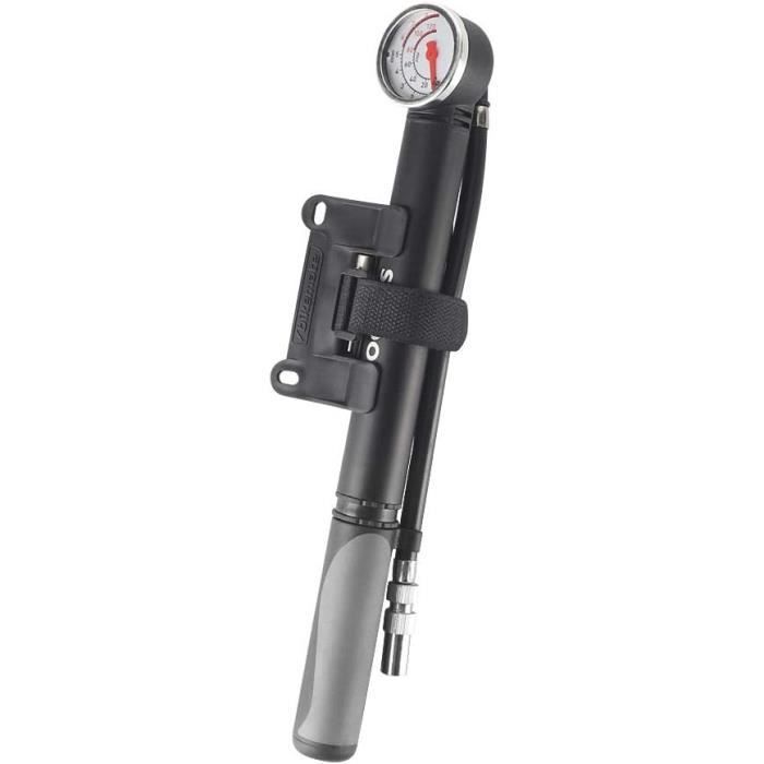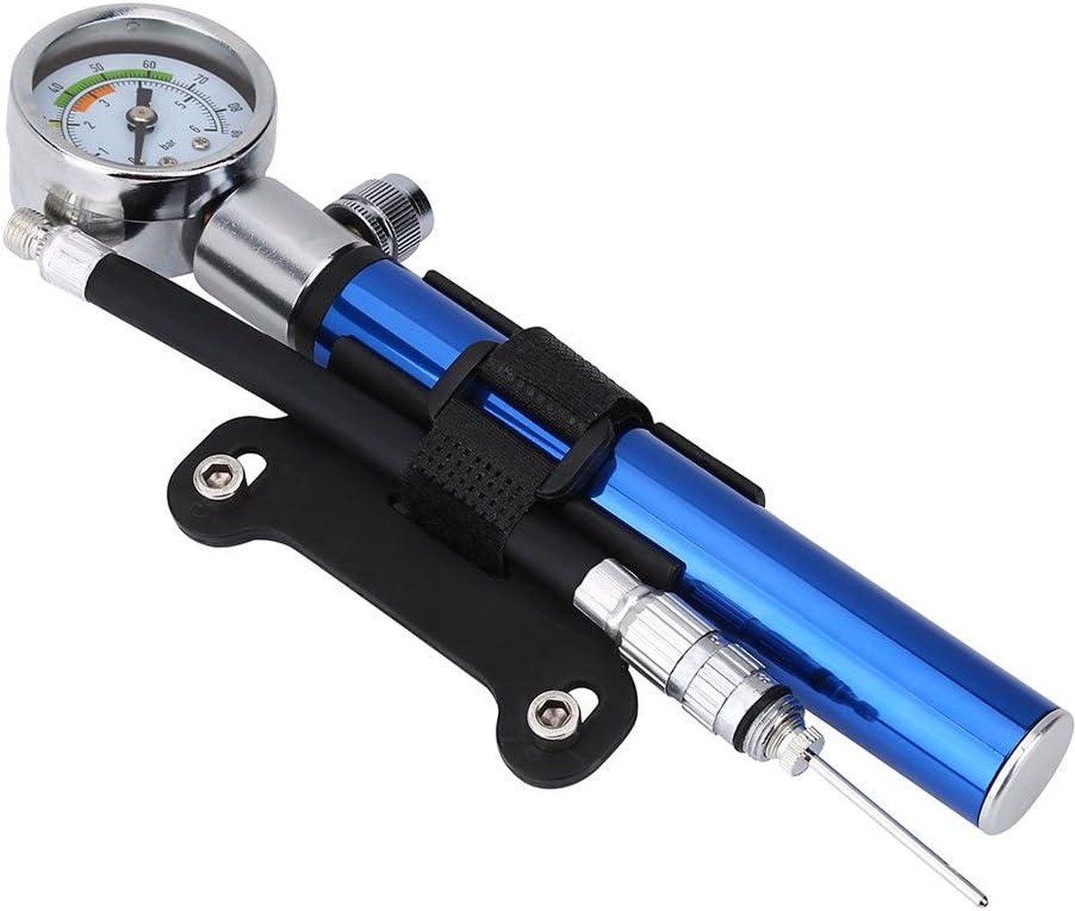 Pompe à vélo avec manomètre - manomètre 11Bar - toutes les valves Pompe Velo Electrique Pompe à Vélo Avec Manomètre, Portable Mini Pompe à Vélo à Pied, Pompe Gonflage Pneu Vélo Rapide Pas besoin de remplacer la valve, le tuyau est compatible avec les valves Presta et Schrader. Caractéristiques techniques : Matériau : alliage d'aluminium. Pression de fonctionnement : 88 psi / 6 bars., Longueur : environ 19,5 cm. Design à double valve : la mini pompe à vélo est livrée avec 2 valves compatibles avec les valves Presta et Schrader, de sorte que vous pouvez gonfler le vélo sans changer l'adaptateur Contenu du colis : 1 pompe à vélo., 1 support de fixation., 1 sangle., 1 tuyau., 1 valve. Mini Pompe à Vélo avec Manomètre - Marque - Modèle - Aluminium - VTT... Fonctionnement simple et économie d'énergie, avec un manomètre pour contrôler la pression d'air intérieure pour un gonflage précis. Couleur : noir ou bleu.