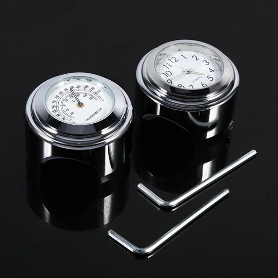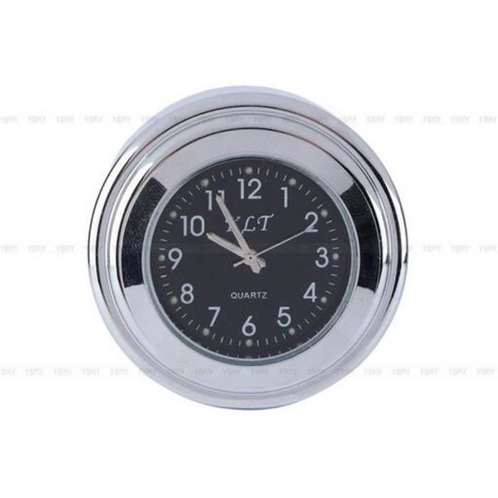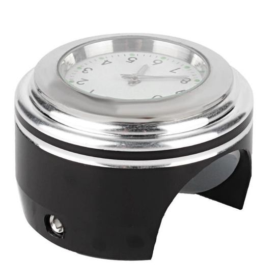 Indice d'étanchéité IPX7, il peut résister à diverses conditions météorologiques. Montre de guidon chrome Diamètre de 3,3 cm, convient pour les guidons avec une gamme de tailles de 22 à 28 mm. Contenu de l'emballage : 1 horloge de guidon de moto., 1 clé à molette. 【Compatibilité】Avec un diamètre de 3 cm, cette horloge est adaptée pour les guidons avec une gamme de tailles de 22 à 28 mm, ce qui la rend compatible avec la plupart des motos. Montre Noire Pour Guidon Moto Horloge De Guidon De Moto En Alliage D'aluminium, ... - Grandado Kit Montre Noir Avec Clé Et Adhésif Caractéristiques : Nom de la pièce : horloge de moto. 1 ruban adhésif double face. 【Support de guidon】Spécialement conçue pour le guidon, cette horloge peut être facilement montée sur votre vélo, offrant un moyen pratique de vérifier tout en conduisant. Matériau : alliage d'aluminium., Diamètre : 3,3 cm. Montre à quartz lumineuse pour guidon de moto - Petit support en Couleur : bleu, rouge, blanc, noir. Alliage d'aluminium : fabriquée en alliage d'aluminium, cette horloge de moto est non seulement mais également élégante, ajoutant une touche d'élégance à votre vélo