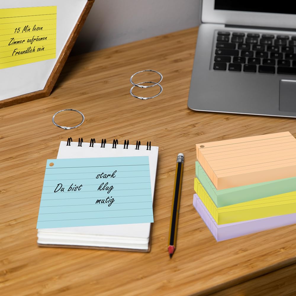 Contenu : 400 cartes, 8 couleurs par 50 pièces avec 8 anneaux de reliure OXFORD Feuilles perforées A4 lignées bords 5 couleurs pastel x120 Cartes d'apprentissage – 8 couleurs différentes, trou en haut à droite, avec anneaux de reliure Ces fiches bristol polyvalentes en 8 couleurs différentes offrent un moyen flexible d'organiser les informations de manière claire et structurée. Format : A6 (105 x 148 mm) Type : perforé, ligné des deux côtés Papier : 160 g/m² / Couleurs : jaune, jaune intense, saumon, flamant rose, lavande, vert moyen, austergau et bleu moyen Idéal pour l'école, les études ou pour apprendre le vocabulaire, les faits et les termes. 150 pcs Cartes de Révision, Flash Cards, Cartes d'Index Perforées Variante : fiches A6 lignées Chaque carte a un trou en haut à droite, de sorte que vous pouvez facilement l'attacher avec les anneaux de reliure fournis et les réorganiser à tout moment selon vos besoins. Parfait pour tous ceux qui veulent rendre leurs méthodes d'apprentissage efficaces et créatives Variante : fiches A6 lignées Contenu : 400 cartes, 8 couleurs par 50 pièces avec 8 anneaux de reliure Format : A6 (148 x 105 mm) Papier : 160 g/m² / Couleurs : jaune, jaune intense, saumon, flamant rose, lavande, vert moyen, austergau et bleu moyen Type : perforé, imprimé des deux côtés Facilitez l’archivage avec nos fiches perforées prêtes à classer. Qualité professionnelle, livraison rapide avec Cartons étude Organisation Fiche Cartonnée Fiches Bristol A6 PRICARO - 400 Fiches Lignées Perforées - 8 Couleurs Avec Anneaux Métalliques Organisation Notes étude Flash Card Grâce aux différentes couleurs, vous gardez toujours une vue d'ensemble et pouvez personnaliser vos matériaux d'apprentissage.