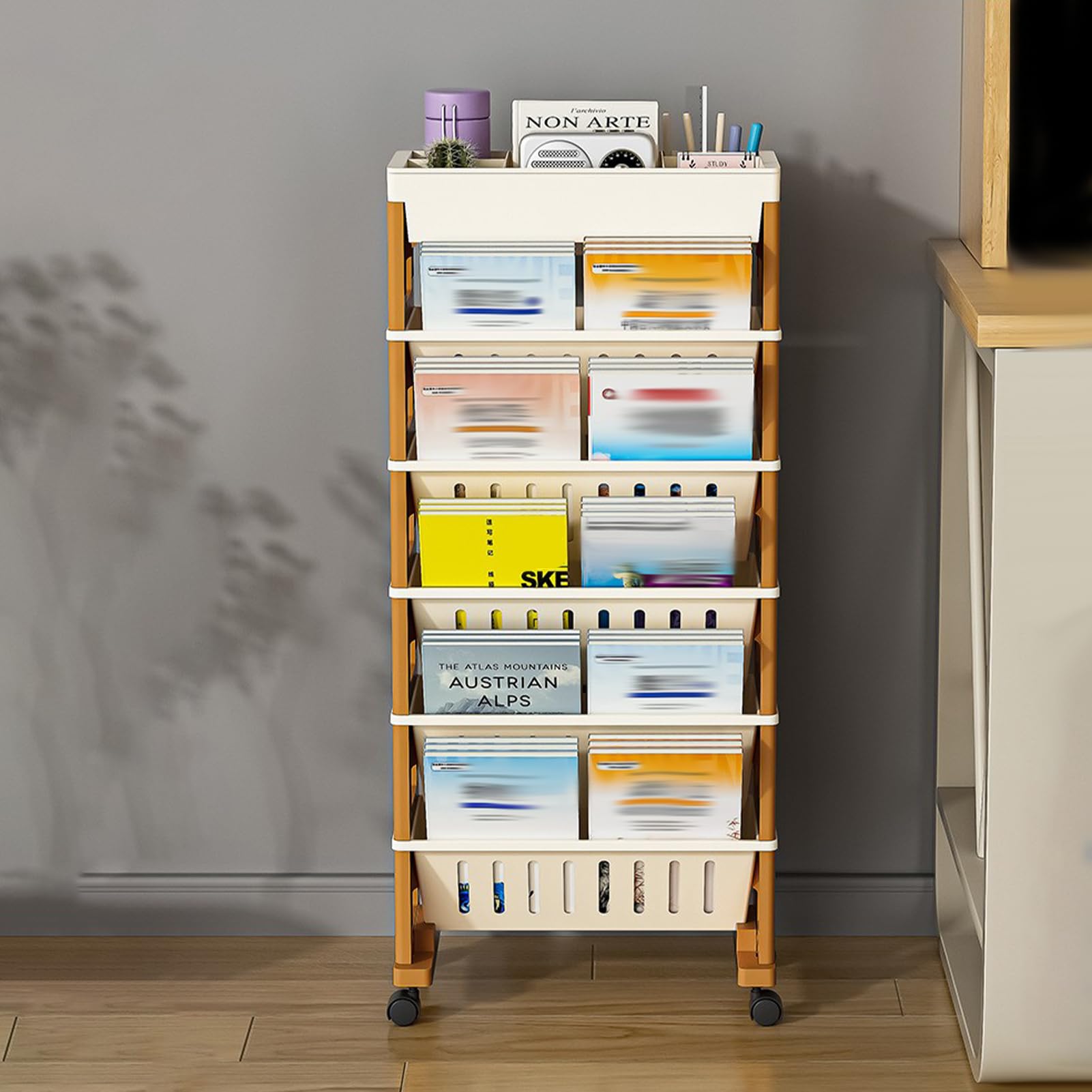 Organiseur de rangement multifonction : cette bibliothèque n'est pas seulement pour les livres. YLSZHYR Bibliothèque de rangement mobile, amovible et amovible, chariot de rangement pour le bureau, l'école, la maison, les magazines, les fichiers, les livres (blanc gris, 6 étages Étagère mobile pour livres Notre chariot de bibliothèque roulant se compose de quatre roulettes qui peuvent pivoter à 360 degrés, ce qui vous permet de vous déplacer facilement dans votre espace de travail d'apprentissage, même dans un espace limité. Taille parfaite : nos étagères sont fabriquées en plastique de haute qualité, assurant robustesse et durabilité. Utilisez-les pour ranger des livres à la maison, au bureau, dans la chambre, dans le salon, ou même à l'école. Utilisation polyvalente : conçues pour tout le monde, nos étagères blanches sont parfaites pour les enfants, les étudiants et les travailleurs. Gardez vos stylos, tasses à eau et petits utilitaires sur l'étagère supérieure et tous vos magazines, notes et livres sur les autres étagères. CEN Support de stockage de livres Support de rangement de livres Les rouleaux universels facilitent le déplacement et le rangement multicouche permet une organisation efficace des livres. Capacité multicouche Notre bibliothèque mobile a une capacité multicouche. Bibliothèque de rangement mobile : avec des roues mobiles, il est facile d'empiler, de ranger et de classer vos livres. SUPPORT DE RANGEMENT pour planche à roulettes support de planche à... Meuble Maquillage Rangement YLSZHY Bibliothu00e8que De Rangement Mobile, Support De Rangement Amovible Pour Livres, Chariot U00e0 Roulettes, Pour Bureau, U00e9cole, Maison, Magazines, Fichiers, Livres (rose Bibliotheque Roulette Convient pour diverses occasions