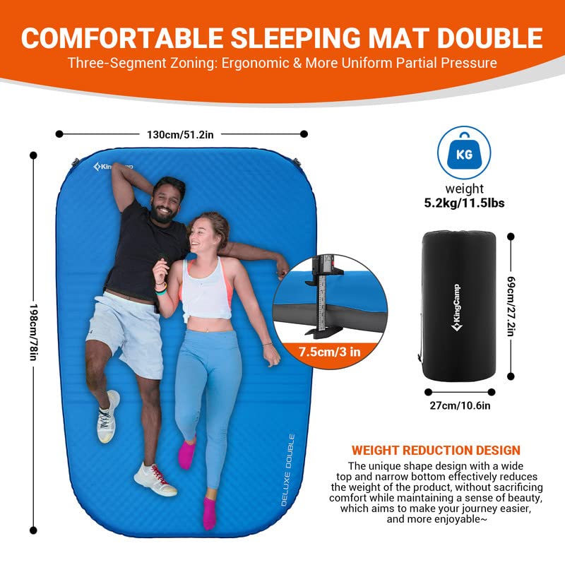 Vous pouvez le rouler d'avant en arrière ou l'utiliser deux fois pour restaurer l'élasticité de l'éponge. CONCEPTION EN TROIS SECTION: Vous profiterez d'une bonne nuit de sommeil, car votre corps se sentira bien pour la sensation de confort de la conception spéciale de la surface. Indispensable pour le camping, la randonnée, la vie à la maison et toute autre activité de plein air. Taille du paquet: 70 × 20 × 20 cm Le confort du matelas autogonflant de Quechua pour vos avent Pour dégonfler le matelas 1., Ouvrez les valves, faites rouler le coussin par le bas, appuyez sur la partie roulée par vos jambes. Outils d'Emballage La bande de cerclage aide à réduire la taille de l'emballage et facilite son emballage. KingCamp Matelas Autogonflant pour 2 Personnes avec Oreiller 198 x 130 x 4 cm Conception en Trois Sections Tapis de Couchage pour Camping Randonnée Voyage Plage Maison Et nous espérons offrir la meilleure expérience à tous nos clients. Taille de gonflage complète: 198 × 130 × 4 cm Ce matelas de camping est à la fois résistant à l'eau et facile à nettoyer, vous permettant de vous détendre et de profiter de votre voyage sans vous soucier de la saleté et des débris., Poids: 4,4 kg Comment gonfler et dégonfler Pour gonfler le matelas Ouvrez les valves, le coussin se gonflera tout seul. Deux oreillers autogonflants ajoutent plus de confort. Couleur: beige / gris / vert / bleu DEUX VALVES Deux valves assurent un gonflage et un dégonflage rapides. Design confortable : le tapis de couchage pour 2 personnes a une taille de gonflage complet de 198,1 x 130 x 4,1 cm et une taille emballée de 27,6 x 20,1 cm. Le design triple zone offre un soutien et un confort supérieurs, quelle que soit la façon dont vous dormez, sur le côté, le ventre ou le dos GARANTIE À VIE: Deux valves mises à jour permettent un gonflage et un dégonflage rapides. Coziya Matelas Gonflable KingCamp Matelas Autogonflant Pour 2 Personnes Avec Oreiller 198 X 130 X 4 Cm Conception En Trois Sections Tapis De Couchage Pour Camping Randonnu00e9e Voyage Plage Maison Matelas Lit Parapluie OREILLERS AUTOGONFLANTS Deux oreillers autogonflants pour ajouter plus de confort. DIFFERENT COLOURS Différentes couleurs pour votre choix, bleu / beige / vert / gris. DURABLE ET PRATIQUE: La taille de gonflage complète est de 198 × 130 × 4 cm (78 x 51,2 x 1,6 ); Poids 4,4 kg / 9,7 lb. Il y aura 2 ceintures de cerclage supplémentaires et un kit de réparation inclus, pratiques pour votre utilisation de longue date. Laissez votre tapis de camping se remplir pendant que vous installez votre tente ou votre foyer! Matériau du sac de transport: sac de rangement Oxford 150D La conception TRIPLE ZONE rend ce coussin plus confortable; Fabriqué en polyester 100% micro brossé 75D imperméable et durable avec remplissage en éponge isolante, il est résistant à l'humidité et doux pour la peau. N'hésitez pas à nous faire savoir si vous avez des questions ou des préoccupations. À propos de KingCamp Fondée en 2002, la marque KingCamp est devenue chef de marque et professionnelle dans la fabrication et la distribution d'équipements d'extérieur dans plus de 46 pays à travers le monde, fournissant d'excellents produits visant à satisfaire la demande de nos clients et leur relation avec la nature, apprenez à aimer le plein air! Ouvrez simplement les deux valves et regardez l'air entrer. Exposition au soleil peut rendre le processus plus rapide et meilleur. KingCamp Matelas Autogonflant pour 2 Personnes a CONCEPTION EN TROIS SECTION AVEC OREILLER Économisez votre énergie pour faire de la randonnée dans la nature avec ce tapis de camping auto-gonflable.