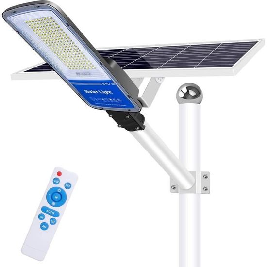 Le lampadaire solaire puissant 1200W s’allume automatiquement à la tombée de la nuit et s’adapte à votre présence grâce à son capteur de mouvement. Sa télécommande permet de choisir facilement le mode idéal, tandis que son indice IP65 garantit une résistance totale aux intempéries 【3 modes 】Mode ① : Du crépuscule à l'aubeLa: Lampadaire Solaire s'allume automatiquement au crépuscule et s'éteint à l'aube. Projecteur Solaire 6500K 792 LED Wowspeed 600W Lampadaire Solaire Exterieur Avec Télécommande Lampe étanche IP67 1 Détecteur de Mouvement 2 Mode Minuterie 3 Réglage de la Luminosité Mode ③ : Mode de synchronisation, le lampadaire solaire LED s'éteindra automatiquement après 3/5/8 heures d'éclairage continu Vous pouvez facilement régler le mode du lampadaire et la luminosité de la Réverbère Solaire grâce à la télécommande Aigostar - Lampadaire solaire avec détecteur LED/50W/3,2V IP65 6500K Télécommande Lampadaire Solaire Extérieur Lampe Solaire Extérieur, 6000Lm Led Il utilise les derniers panneaux solaires avancés et est équipé d'une batterie de grande capacité de 15000 mAh. Mode ② : Détection de mouvement : maintient un éclairage de puissance de 30%, s'ajuste automatiquement à un éclairage de puissance de 100% après avoir détecté un mouvement et restaure une luminosité de 30% après 30 secondes. 【0 facture d'électricité respectueuse de l'environnement】La Lampadaire Solaire Exterieur ne nécessite aucune facture d'électricité.