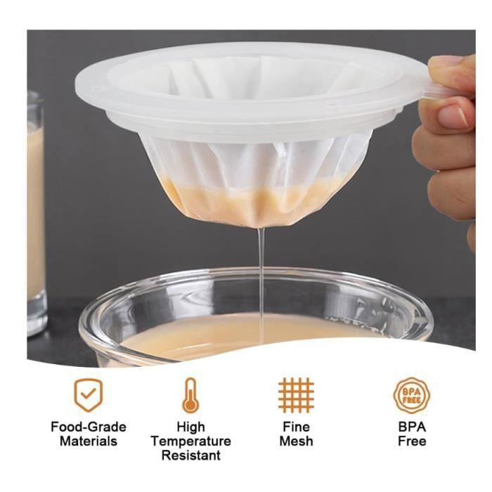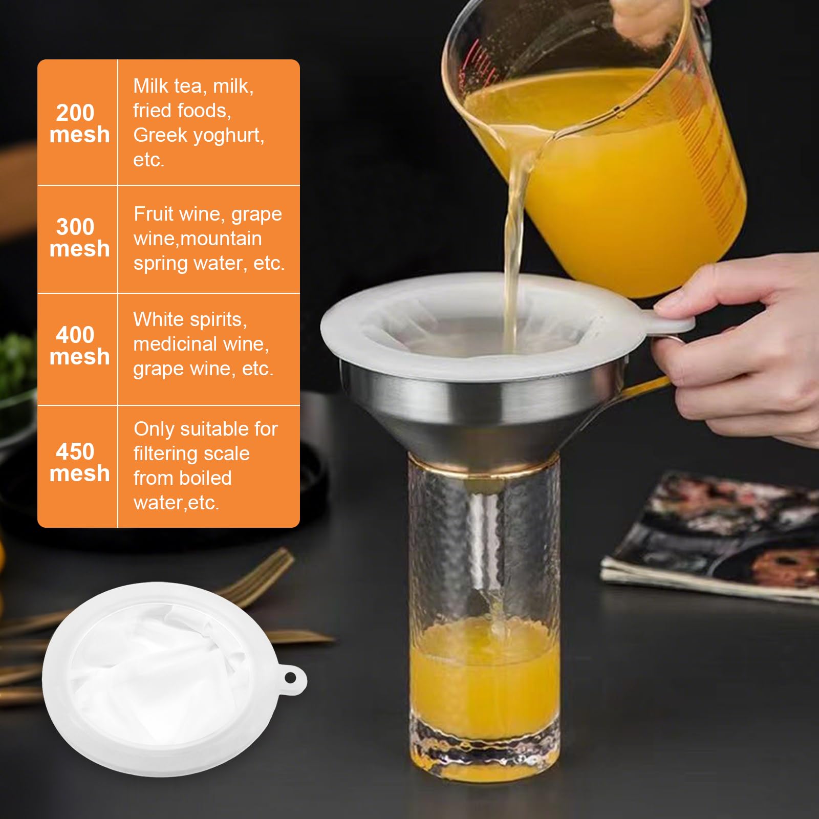 Tamis ultra-fin pour diverses préparations alimentaires. - Test et Avis Son bord en plastique doté d’une petite anse permet également un usage autonome — pas besoin d’entonnoir pour filtrer huile de friture, jus ou vin maison. Tamis Fin 4 Pièces Filtre à En Nylon, 200/300/400/450 Maille Filtre Alimentaire, Filtre à Mailles Fines, Passoire Alimentaire De Cuisine Nylon Pour Jus, Vin, Liqueur, Lait, Café, Confiture Etamine Pour Confiture Leur conception à haute densité capture précisément les particules fines, garantissant des boissons (soja, jus, miel, café) ou préparations sans résidus — résultat professionnel à chaque utilisation. 【 Facile à Nettoyer & Réutilisable】Économique et écologique : lave-toi facilement à l’eau savonneuse après utilisation, sèche-toi rapidement et réutilise-toi de nombreuses fois. Pas de déchet inutile, idéal pour un usage quotidien durable. Ce tamis filtre alimentaire peut être utilisé pour filtrer le lait de soja, le jus, le lait, le café, le vin, les médicaments, l'huile, le yaourt, etc. C'est un accessoire essentiel pour les cuisines domestiques Filtre de presse à tamis fin en maille d'acier inoxydable pour presse Adapte-toi à toutes vos recettes, des boissons traditionnelles aux préparations artisanales. Pratique pour toutes les cuisines ! 【 Ensemble de passoires filtrantes】Set de 4 filtres avec différentes mailles : 200 mesh (filtrage standard pour soja/miel), 300 mesh (jus fruits/vin), 400 mesh, 450 mesh.
