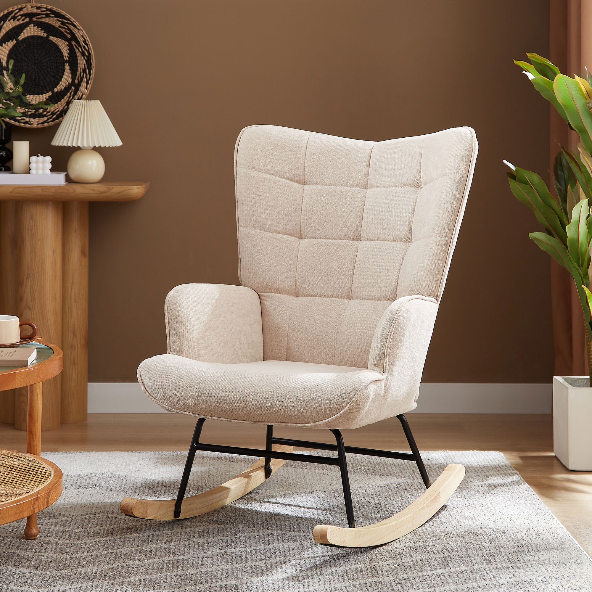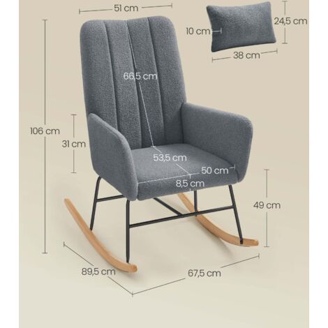 Notre fauteuil à bascule est conçu dans un style scandinave. Fauteuils de salon à bascule, fauteuil à bascule rembourré, rocking chair scandinave avec réglable dossier, fauteuil 1 place pour bureau, salon, chambre à coucher Spécification Matériau : bois massif + Métal + velours Charge maximale : 120 kg. Sécurité et stabilité : le fauteuil à bascule est composé d'un siège rembourré moelleux, d'un cadre métallique solide et d'une base en bois massif robuste. Vous constaterez que le fauteuil d'allaitement ou le fauteuil à bascule est rapidement prêt à l'emploi. Fauteuil à Bascule Allaitement Scandinave Avec Accoudoirs En Velours G – Meubles Cosy Chaise Bergère Velours Accoudoirs Couleur : Rose/ Beige / Gris clair / Gris foncé Poids : 11 kg. Multifonctionnel : ce fauteuil à bascule moderne et élégant s'intègre et embellit votre espace de vie : il peut servir de fauteuil de détente, de fauteuil de lecture, de chaise longue ou de fauteuil TV dans votre salon, votre chambre, votre bureau, sur votre balcon, votre terrasse, dans votre jardin ou votre cour. Facile à installer : le fauteuil s'assemble rapidement et facilement en 15 à 20 minutes. Montage requis : Oui Contenu de l'emballage : 1 fauteuil à bascule. Fauteuil à bascule design en bois et tissu. 1 place. Rocking chair Conception ergonomique : le fauteuil est doté d'un dossier très incurvé, d'un coussin d'assise profond et moelleux et d'une paire d'accoudoirs légèrement inclinés, offrant un soutien optimal pour votre dos, vos hanches et vos bras, et soulageant efficacement la fatigue Nordlys - Rocking Chair Chaise A Bascule Scandinave Tissu Hevea Beige...