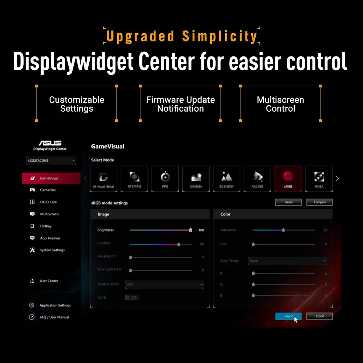 Dalle 27 QHD (2560 x 1440) Fast IPS avec taux de rafraîchissement de 300 Hz pour un jeu rapide Le TUF Gaming VG27AQML5A QHD est un moniteur de 27 pouces qui offre cinq mises à niveau avancées pour des jeux de haut niveau. Avec des performances colorimétriques améliorées, une IA gaming mise à jour et un contrôle sans effort via le DisplayWidget Center, ce moniteur vous permet de garder une longueur d'avance sur la concurrence. ASUS TUF Gaming VG27AQML5A Review: un auténtico Fast IPS de 300 Hz muy Asus TUF Gaming Series 5 - VG27AQML5A Gaming Monitor (27-inch QHD Fast-IPS panel, 300Hz, 0.3ms , G-SYNC® compatible AMD FreeSync™ Premium, ELMB SYNC, VESA DisplayHDR™ 400, 95% DCI-P3, DisplayWidget Center, Gaming AI La technologie HDR (High Dynamic Range) avec norme DisplayHDR 400 prend en charge le format HDR-10 pour améliorer les zones claires et sombres La technologie ASUS Extreme Low Motion Blur Sync (ELMB SYNC) permet de combiner l'ELMB avec le taux de rafraîchissement variable, éliminant les images fantômes et les déchirures pour des visuels de jeu nets à des fréquences d'images élevées.
