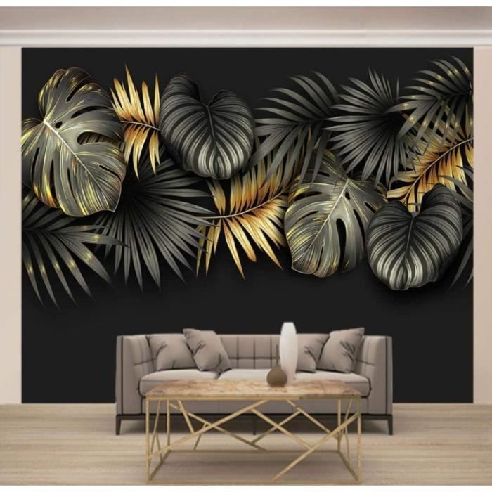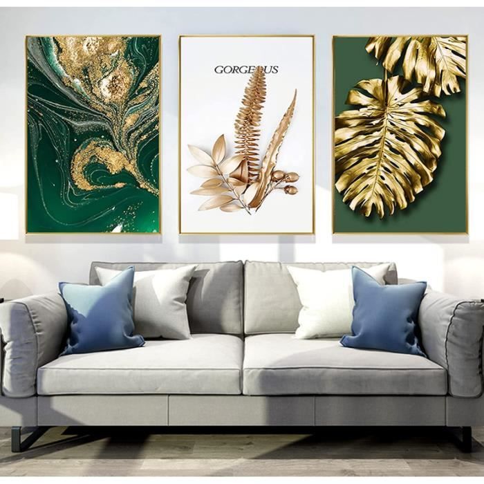 JACBON Peinture à L'huile Abstraite Sur Toile Avec Feuilles Dorées