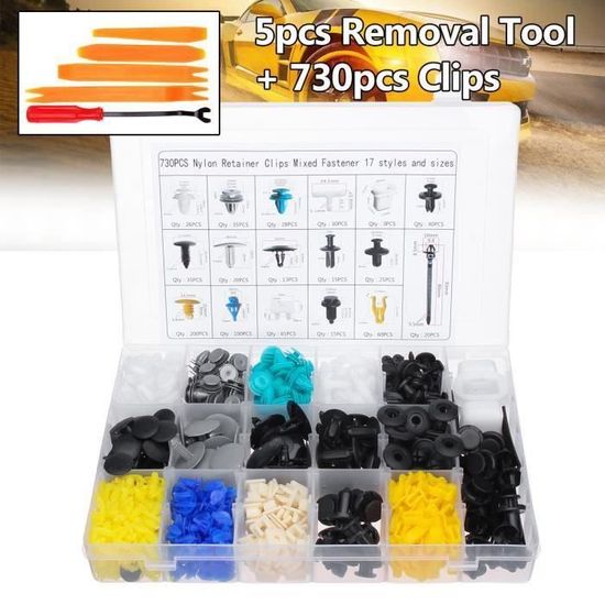 655 Pcs Rivet Clips Plastique Fixation Noir Universel Pour Auto