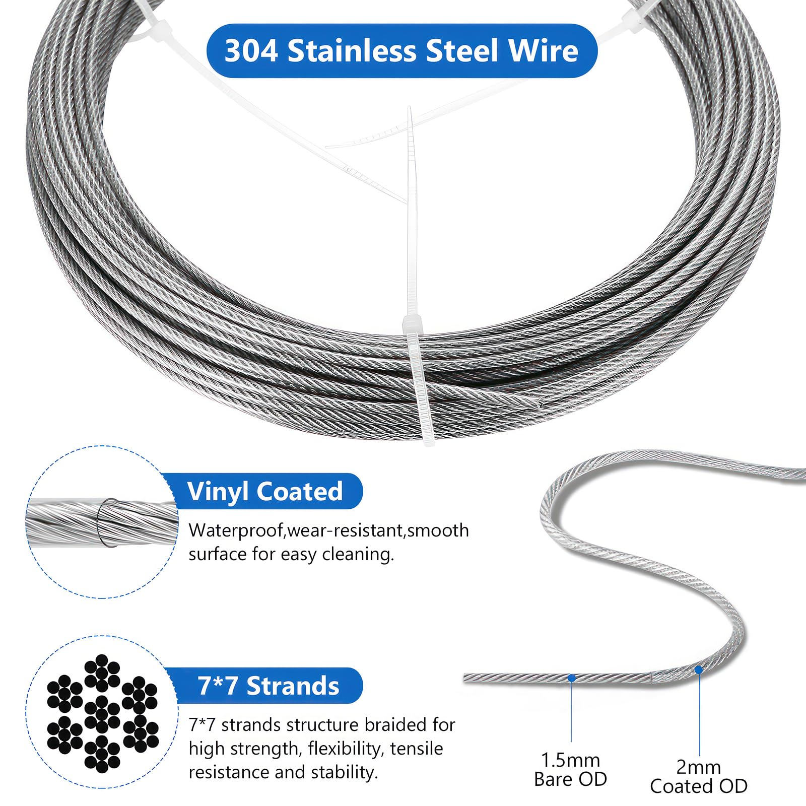 Cable acier galva 14 mm 6x36 ame textile le metre Câble Acier Inoxydable 2mm Cable Acier 2mm, 19 Pcs Cable Inox Câble Métallique Enduite De PVC 15M/50Ft, Corde De Cable En Acier Inoxydable 304 Avec M5 Tendeur Cable Inox/M2 Cosse Coeur/M5 Crochet Oeil Etc Suspendre Kit Câble Acier Gainé PVC 15m Il est utilisé avec un Serre Cable Acier pour s'assurer que la Cable Inox reste serrée et pas facilement détendue, offrant une bonne capacité de chargement et une stabilité de l'installation Parfait pour le conservatoire, le balcon, la terrasse et le patio. 【Ensemble de Cable Acier de 21 pièces】contient 1 morceau de Cable Acier de 15 m de long de 2 mm, 2 Serre Cable Acier, 2 crochets d'extension M5, boulons à cycle 4 m3, pinces de corde à câbles de 4 m3, anneaux de corde filaire 4 m3 et 43 m3 Cer Ropes Scelaros 21 Pièces Ensemble de Cable Acier 2 Mm 15 M de Long Cuttable Acier Inoxydable avec Tendeur Cable Inox pour Tendeur Fil a Linge, Aide à L'Usine D'Escalade Lustre Suspendu et Autres Projets de DIY 【Résistant aux intempéries et durable: 】la ensemble de Tendeur Cable Inox a de bonnes performances imperméables, convient à une utilisation intérieure et extérieure, peut maintenir des performances stables dans une variété de conditions climatiques, assurant une fiabilité à long terme Bague en Acier Inoxydable - 2 mm | Livraison Gratuite 【Stable et fiable】 la conception tressée multi-brin améliore la flexibilité et la résistance à la traction. Spécifications du produit: Matériel:acier inoxydable Taille:15m / 2 mm Couleur:argent et blanc Quantité d'emballage: 1 *Cable Inox 15m 2 * Dispositif de resserrement 2 * M5 Expansion Crochet 4 *Clip de corde métallique m3 4 *Boulons d'anneau m4 4 *Bague de corde filaire m3 4 *Clip de corde en aluminium m3