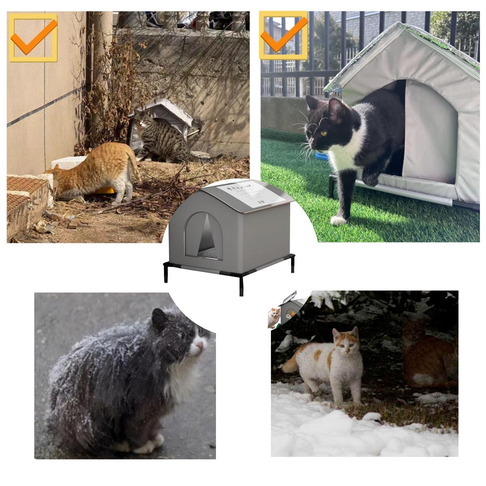 Fiabilité toutes saisons: équipée d'une base robuste sans glissement,le Cat House Outdoor assure des performances durables en résisant aux éléments météorologiques durs comme les vents forts, ce qui le rend idéal pour le placement dans les zones exposées telles que les arrière-cours ou les terrasses ouvertes sans changement ni dommage Abri Chat Extérieur Résistant Intempéries IELSH Maison De Chat Exterieur Waterproof Niche D'extérieur Pour Chien, Abri Extérieur Pour Chat Épaississant, Tente Exterieur Pour Chat - Résistant Aux Intempéries, Bonne Protection Au Froid Abri Chat Extérieur Balcon Jardin Solution d'économie d'espace: conçue avec une durabilité à l'e-sprit,la maison de la maison de chat extérieure offre une protection fiable contre la pluie, le vent et la neige, créant une retraite sécurisée pour les félins qui aiment passer du temps à l'extérieur toute l'année La conception comprend des condos et une structure en forme de grotte, offrant aux chats un sentiment de sécurité à l'extérieur. Spécification:Nom du produit: maison de chat en plein airMatériel: tis-su oxfordPoids: environ 450gTaille du produit: environ 41x41x33cm / 16., 14x16., 14x12., 99 poucesListe de colisage:1 * Cat House Outdoor1 * autocollant de coeur1 * coussin3 * Fixation des brochesNote:En raison de différents paramètres d'éclairage et d'écran, la couleur de l'élément peut être légèrement différente de l'image. Notre maison confortable pour chat est la maison parfaite pour les chats en plein air, les chats communautaires et les chats sauvages, chaude et confortable, facile à monter et résistante à l'hiver En raison de différentes mesures manuelles, veuillez permettre une différence de taille de 1 à 2 cm., Mode d'emploi 0 Niche pour Chat Exterieur Isolee Hiver - Chenil Chien | Chauffante Isolée Grotte Abri Petit Protection toutes les temps:cette maison de chats extérieurs dispose d'une conception à l'épreuve du vent et résistante à la pluie en tis-su d'Oxford à haute densité, bloquant efficacement la pénétration de l'eau tout en réduisant la perte de chaleur pour garder les chats au chaud et au sec pendant des conditions humides ou froides, a-ssurant le confort dans les environnements extérieurs Qu'il soit utilisé comme retraite de style tente ou comme un paradis résistant aux intempéries, il maintient les chats au chaud et au sec pendant des mois plus froids.