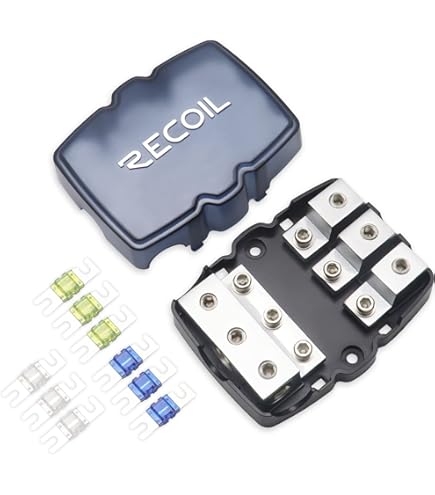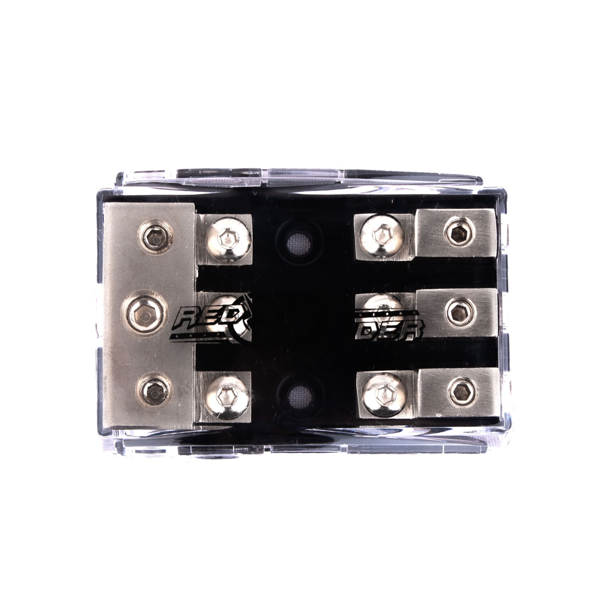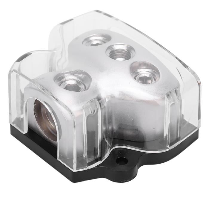 Bloc de fusible ANL de Distribution Audio de voiture à 4 Bloc Fusibles Ampli Audio Voiture Bloc De Distribution Porte-fusible Audio De Voiture 12 V 60 A Mini Fusible 80a Le bloc fusible ANL et le support ANL sont parfaits pour les amplificateurs audio, les alarmes de caisson de basses, les systèmes d'amplification dans la voiture, le bateau, le camping-car, le camion Bloc de distribution audio à 3 compartiments pour voiture - Mini porte-fusibles ANL - Répartiteur de courant - 4GA IN 8GA OUT - 30 A, 60 A, 80 A, 100 A Description de la puissance : Porte-fusible ANL : 3 x entrée fil 4GA et 2 x sortie de fil 8GA. Le porte-fusible ANL à 3 voies dispose d'une entrée de câble de calibre 4 à 3 voies et d'une sortie de câble de calibre 8 à 3 voies. Boite à fusibles et répartiteur de courant intelligent Rend votre câble plus propre avec les fusibles mini anl de 30 ampères, 60 ampères, 80 ampères, 100 ampères. DBVox Bloc d'alimentation dBVox 22 (pour 6 fusibles ANL Étui en plastique amovible Hyaline Contenu : 1 x emporte-pièce., 1 porte-fusibles ANL., 2 fusibles ANL 30 A., 2 fusibles ANL 60 A., 2 fusibles ANL 80 A., 2 fusibles ANL 100 A., 8 vis., 3 clés hexagonales