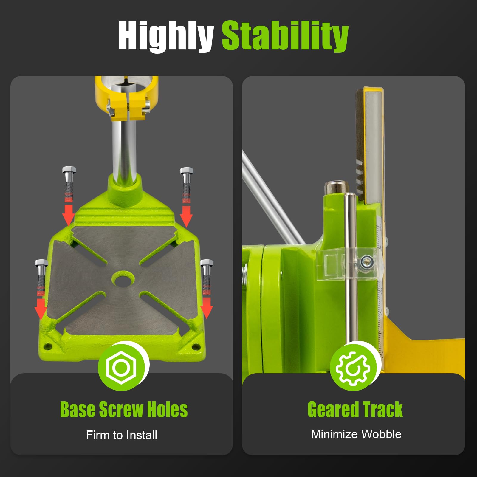 L'outil de perçage est équipé d'un guide à queue d'aronde et d'un micro-réglage en laiton pour assurer une grande précision et durabilité. Support de Perçage Sécurisé et Précis OUBUBY Support de perçage 49 cm, support de perçage rotatif à 90°, gabarit de perçage, support de perçage mobile, support de perçage réglable, convient pour un usage industriel et privé : : BricolagePivotant à 90 Axe Y Course : 50 mm/1,96 pouces Diamètre de la tige : 25 mm., Fond : 22 x 16 cm. Si le foret est un peu plus petit, il peut être fixé avec une tête en plastique. Dimensions de l'emballage : 42 x 19 x 10 cm., Poids : 3,65 kg. Arbre : 40 cm/15,75 pouces Serrage : 3,8-4,2 cm. 【Têtes en plastique】Équipé de trois têtes en plastique de différents diamètres intérieurs (43 mm/1,69 pouces, 40 mm/1,57 pouces, 27 mm/1,06 pouces), qui peuvent être utilisées avec une variété de forets. Description : Vous êtes à la recherche d'un mandrin à la fois professionnel et abordable ? Vous êtes à la recherche d'un outil robuste et fiable qui peut effectuer plusieurs tâches à la fois ? Alors ce gabarit de perçage professionnel est le choix parfait pour vous. Support Pour Perçage De Col Support De Perceuse électrique Support De Banc Support De Forage Support De Banc 90 Rotatif Support Perceuse Contenu de la livraison : 1 support de perçage. Grande adaptabilité] : ce support de perceuse a un mandrin réglable d'environ 1,5 à 16,5 cm et s'adapte à la plupart des tailles de forets classiques. Si le foret est un peu plus petit, il peut être fixé avec des têtes en plastique, ce qui facilite l'utilisation Pivotant à 90° : le mandrin peut être pivoté à 90° et permet ainsi des travaux de perçage multi-angles. En outre, la base est équipée d'une fente d'extension pour le montage d'un étau ou d'un moule en fonte, ce qui rend le fonctionnement plus pratique. Caractéristiques : Matériau de la base : fonte Rotation à 90° Hauteur : 49 cm Course simple : 0-6 cm. 3 têtes en plastique., 1 couvercle., Remarques : 1., Veuillez vérifier la taille de votre perceuse avant l'achat car les mâchoires sont de 1,5 à 1,65 pouces 2., Veuillez noter que la perceuse électrique sur l'image n'est pas incluse., 3., Les mesures étant prises à la main, les tailles indiquées peuvent varier de 1 à 3 cm. Échelle de levage : le dispositif de perçage rotatif est équipé d'une échelle de levage conviviale, conçue pour une course allant jusqu'à 2,36 pouces, vous offrant une référence pour une utilisation plus facile. Hauteur réglable : la hauteur du support peut être réglée en fonction de la hauteur de travail et de la longueur du foret, ce qui facilite l'utilisation. Le porte-foret a un mandrin réglable de 1,5 à 6,5 et s'adapte à la plupart des tailles de forets traditionnelles. Le design ergonomique du mandrin vous permet de l'utiliser avec facilité lors de vos travaux de perçage.