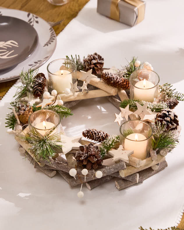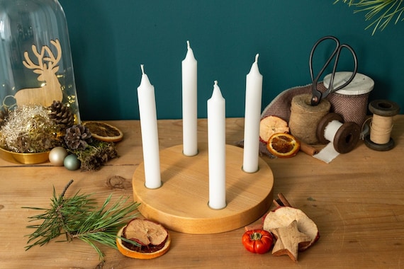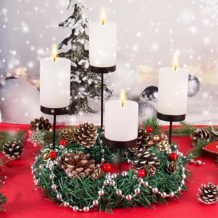 Bougeoir de Noël de qualité supérieure : ce bougeoir festif est composé d'un plateau en bois de qualité supérieure et d'ornements en métal finement travaillés avec des motifs de Noël. 4 bougeoirs de 4 cm de diamètre : avec ses dimensions 26 x 8 x 12 cm, cette couronne de l'Avent offre des supports en bois de 4 cm de diamètre pour bougies chauffe-plat. Un magnifique chandelier fait à la main en forme de sapin, qui symbolise la pure magie de Noël. Le modèle attrayant avec des astérisques sur le dessus est en aluminium nickelé Bougeoir couronne de l'Avent - Décoration de Noël : notre couronne de l'Avent en métal combine un plateau en bois, une figurine d'élan de Noël en métal, un sapin et une cabane d'hiver. Transformez votre maison en décor de Noël et profitez de moments de paix. Créez une ambiance chaleureuse et festive en hiver Le montage est facile en insérant la décoration en métal dans la rainure de la planche en bois. COM-FOUR® Couronne de l'Avent oblongue, Chandelier de Noël pour 4 Une fois les bougies allumées, une atmosphère de Noël parfaite se déploie dans votre maison. Ce photophore de qualité supérieure est un choix pour la décoration de Noël, l'éclairage de Noël, la décoration de l'Avent, la décoration de bougeoir, mais aussi comme cadeau de l'Avent, de Noël, du Nouvel An ou de Thanksgiving pour les parents, les familles et les amis. Bougeoir Noël Avec Plateau Bougeoir Couronne De L'Avent En Bois - Rond Avec 4 Supports De Bougies Pour Support 4 Bougies Chauffe-plat Par rapport aux petites couronnes de l'Avent, jusqu'à 4 bougies chauffe-plat ou bougies LED peuvent être placées (bougies non incluses). Transformez votre maison en une toile de fond de Noël et profitez d'heures de détente. Créez une ambiance chaleureuse et festive en hiver.