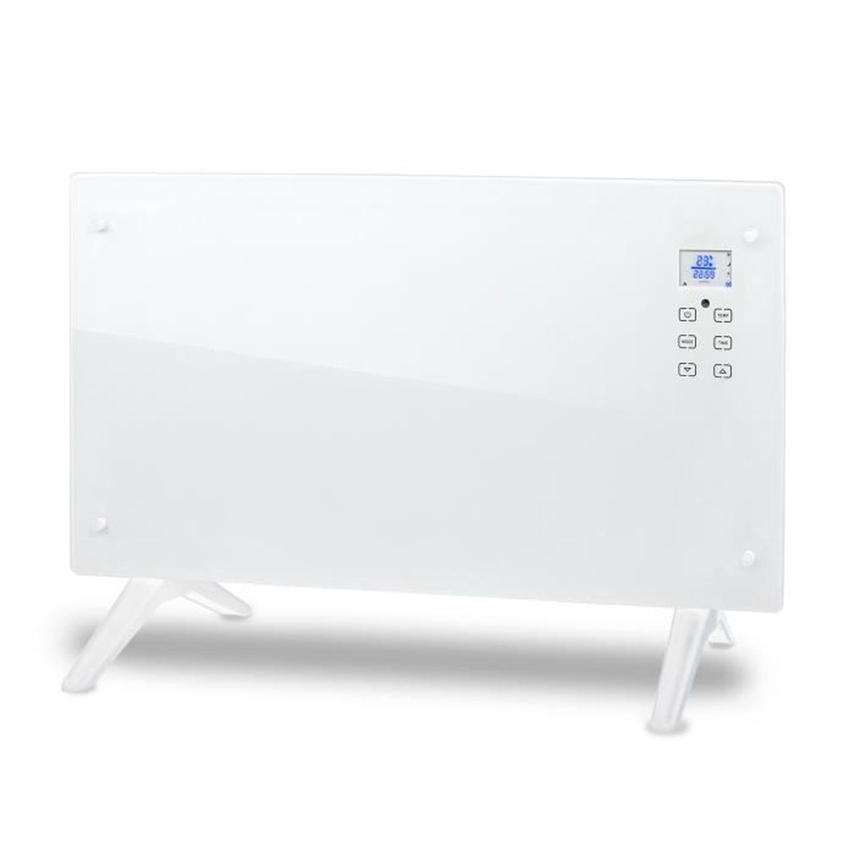 Thermostat électronique à capteur avec fonction anti-gel (5-7 °C) ; avec double protection contre la surchauffe et arrêt automatique pour plus de sécurité. Paramètres techniques : Couleur : noir - Puissance : 2000 W - Matériau : verre trempé - Tension : AC230V, Frequenz 50/60Hz. Thermostat et température réglable : grand affichage LED numérique, touchez l'interrupteur de commande, vous pouvez facilement réchauffer ou refroidir. Cela signifie que vous pouvez entrer dans une pièce chaude et confortable, même si vous le placez dans la salle de bain. 1 x manuel d'utilisation Honeywell Home HZ822E2 convecteur électrique 2000W | Hubo En plus de la température, vous pouvez également régler la durée souhaitée et d'autres horaires. Après avoir déballé le panneau chauffant ultra plat, il suffit de choisir la surface murale souhaitée pour l'installation. Niklas Trend Turbo - Convecteur Poêle Électrique 2000 W... Chauffage Mural Et Sur Pied Le Meilleur Chauffage électrique Avec Radiateur électrique, Radiateur Electrique Chauffage Mural Pied IP24 économe Capteur de température ambiante, réglable de 5 à 50 °C. Schutzart: IP24 (für Innenräume)Temperaturbereich: 5 °C à 50 °C Comparez et évaluez les 10 meilleurs Radiateur Électrique Sur Pied pour 2025 sur . Découvrez les options les mieux notées avec des analyses détaillées pour vous aider à faire le meilleur choix Contenu de la livraison : 1 chauffage par convection , 1 télécommande , 2 supports , 4 supports muraux , 6 vis d'expansion , 6 vis , 2 supports de pied Minuterie intégrée de 24 heures. Grand affichage numérique LED - Minuterie avec fonction d'arrêt automatique 24 heures - Interrupteur tactile - Thermostat électronique avec fonction de protection contre le gel (5-7 °C) - Double protection contre la surchauffe - Arrêt de puissance inclinable - Montage mural et modèle sur pied - Avec capteur de température Wi-Fi - Réglable de 5 à 50 °C - Bande d'aluminium - Radiateur thermique : Dissipateur thermique en aluminium combiné avec un tube chauffant en acier inoxydable, la dissipation de la chaleur à convection double face chauffe rapidement, et l'air chaud est réparti uniformément dans la pièce. Ainsi, vous pouvez créer une atmosphère chaleureuse même par temps froid.