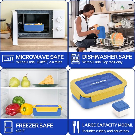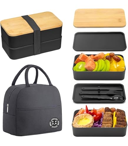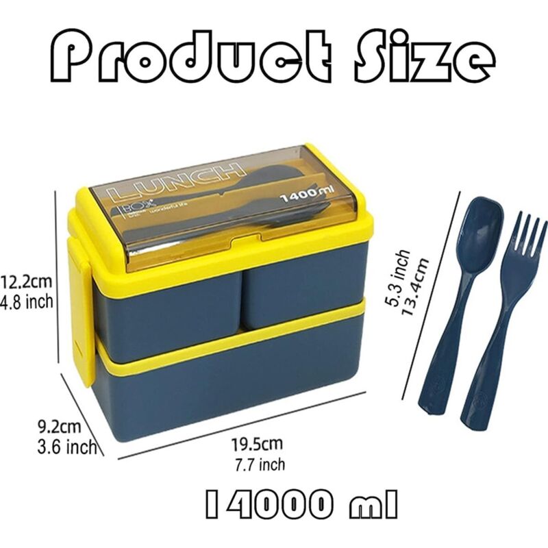 VINATO Lunch Box 1400ml Avec Couverts Pour Bureau, École Et Voyage - Boîte Repas à 2 Niveaux, Sans BPA - Idéale Comme Boite A Lunch Pour Adultes Et Enfants