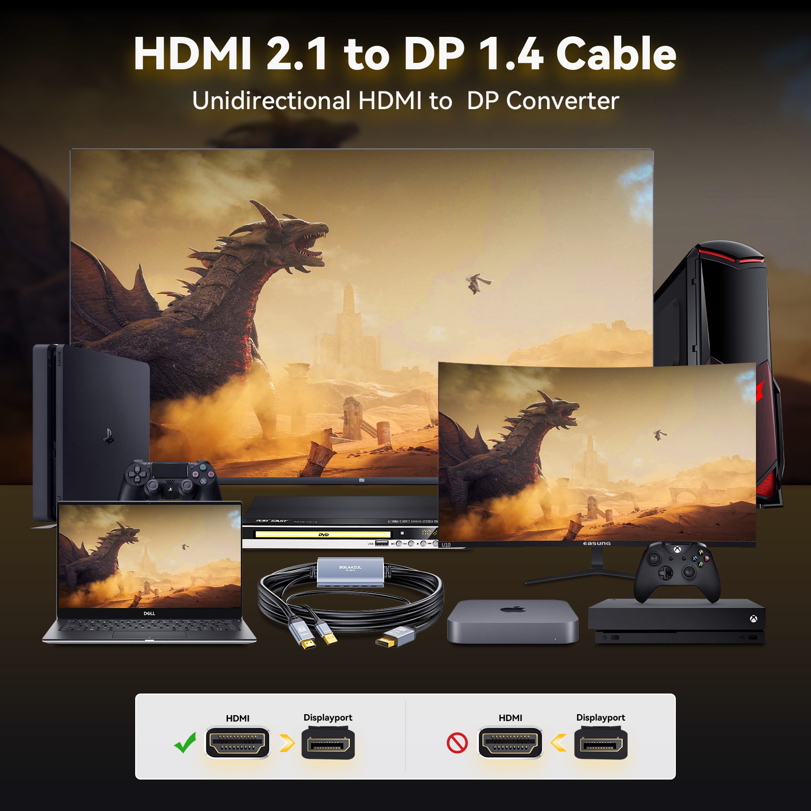 Adaptateur HDI DisplayPort : Les 4 eilleurs odèles - Jide Adaptateur Hdmi Vers Displayport UGREEN 4K Câble 8K 60Hz 4K 240Hz Unidirectionnelle DP 1.4 Vers HDMI 2.1 32.4Gbps HDR HDCP Nylon Tressé Compatible Avec Dell HP Insignia NVIDIA Laptop Projecteur Moniteur (2M Idéal pour les professionnels, les créateurs de contenu et les amateurs de multitâche. [2025] Adaptateur DisplayPort vers HDMI, 8K @ 60Hz / 4K @ 120Hz, Adaptateur Displayport1., 4 vers HDMI2., 1 compatible avec HP, Dell, Projector, moniteur, AMD, GPU, NVIDIA CONCEPTION ROBUSTE - ADAPTATEUR HDMI SUR DISPLAYPORT AVEC CÂBLE FLOCHÉ : le câble tressé protège contre la rupture et l'usure. 8K 60Hz ULTRA-HD & 4K 120Hz PERFORMANCE - DISPLAYPORT VERS HDMI ADAPTATEUR : profitez d'images nettes avec l'adaptateur DisplayPort vers HDMI qui prend en charge 8K @ 60Hz et 4K @ 120Hz L'adaptateur HDMI vers DisplayPort est équipé d'un serre-câble pour garantir une durabilité à long terme, même en cas d'utilisation fréquente. Adaptateur HDI DisplayPort ️ MULTI-MONITOR & EYEFINITY SUPPORT - Adaptateur HDMI vers DisplayPort pour les professionnels : utilisez l'adaptateur HDMI vers DisplayPort pour les configurations AMD Eyefinity et étendez votre affichage sur plusieurs écrans. SON HDR & SURROUND - ADAPTATEUR DISPLAYPORT HDMI POUR LA COULEUR ET LA QUALITÉ AUDIO : l'adaptateur DP vers HDMI prend en charge le HDR pour des couleurs vives et un son surround pour une qualité sonore impressionnante - un must pour les installations modernes de divertissement à domicile et multimédia.