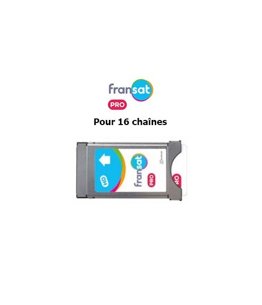 Principales caractéristiques : Accès aux chaînes TV d’Eutelsat ; Compatible avec les décrochages régionaux de France 3 ; Installation et classement automatique des chaînes SD et HD ; Mise à jour par satellite ; Contrôle parental conforme CSA. Module PCMCIA FRANSAT Professionnel PCMCIA FRANSAT Module professionnel pour stations de tête. Ce module vous permet de profiter de l’offre Fransat sur tout téléviseur doté d’un tuner satellite compatible. Pour Eutelsat 5°w Module CAM PCMCIA PRO + Carte FRANSAT Pour Collectivité Immeuble Habitat Module PCMCIA FRANSAT Module carte FRANSAT pour Téléviseurs HD avec tuner satellite intégré Panasonic annonce son partenariat avec Module PCMCIA FRANSAT 1.3 UHD CI+ pour Téléviseurs DVB-S et notre gamme TechniSat et LOEWE TV