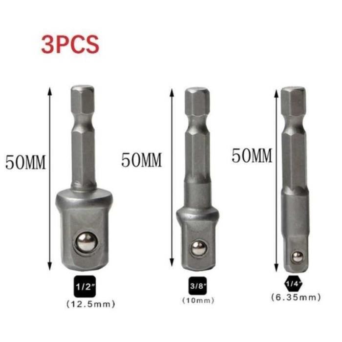 DOUILLE DE TOURNEVIS,Bleu clair--Clé électrique hexagonale de 1-2 à 1-4 Lot de 3 adaptateurs de clé à douille de qualité à impact qui transforme la perceuse électrique en tourne-écrou haute vitesse, foret à tige hexagonale, perceuse électrique carrée, sans fil, tailles 6,35 Ils sont idéaux pour les mécaniciens, ingénieurs, menuisiers ou bricoleurs, permettant de convertir facilement un tournevis pneumatique ou électrique en perceuse ou clé à cliquet. L'installation de l'adaptateur est simple et rapide, ne nécessitant aucun outil supplémentaire YOSOO Adaptateur de clé à douille 4pcs douilles tournevis convertisseur...