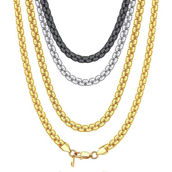 De plus, il convient également pour assortir des pendentifs de différents matériaux et styles afin de créer différents effets de style Tous nos bijoux sont joliment emballés et peuvent être offerts en cadeau pour la famille/petit ami/papa/fils/frère/rockeur, amateur de bijoux hip hop le jour de l’anniversaire/Saint-Valentin/Thanksgiving/Festival/Fête des pères/Noël Chaîne 2mm Design Moderne Chaîne Vénitienne En Acier Inoxydable - France Bijou Hypoallergénique Cadeau La surface est finement polie, lisse et arrondie, et ne raye pas la peau, offrant une expérience de port confortable Design : La chaîne de boîte / vénitienne avec ses lignes simples et lisses et sa forme régulière montre une esthétique moderne et à la mode, donnant aux gens un impact visuel atmosphérique et élégant, qu’elle soit associée à des vêtements décontractés ou formels, elle peut facilement améliorer la mode du look général Chaîne vénitienne allongée - Le Cubicule Dimensions & Emballage : longueur - 61 cm, largeur - 2 mm ; poids net - 6,9 g. Chaîne Homme Femme Vénitienne Acier Inoxydable Vidéo de marchand Bracelet à maillons en acier titane pour hommes, chaîne torsadée de 5MM...