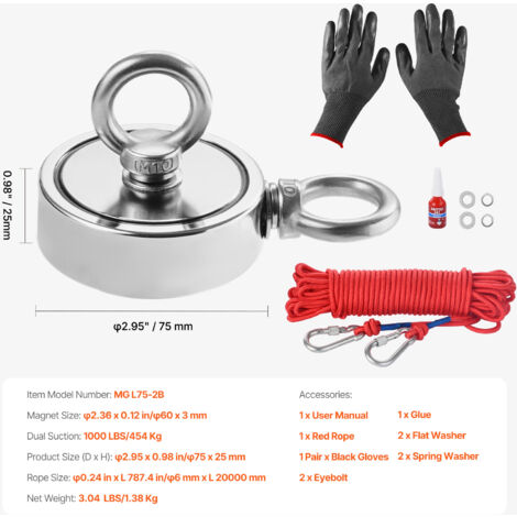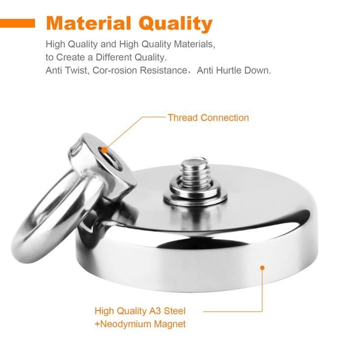 Aimant Récupération Métaux Puissant D20mm Aimant De Pêche Puissant Pour Récupération. - Test Et Avis Aimant Néodyme Fort Trous Fraisés Boulon œil De plus, le crochet magnétique maintient un magnétisme permanent et restera fort même des décennies plus tard. 10 pièces - cylindre puissant, aimant de terre Rare, 15mm x 4mm, aimants ronds en néodyme... Aimant de pêche en néodyme super puissant D25 ~ D60 mm N52 Aimant de terre rare très résistant avec trou fraisé Boulon à œil Récupération magnétique – Large choix de produits de haute qualité La force magnétique équivaut à 10 fois le volume du même aimant, ce qui le rend écologique et durable. Spécifications du produit : Nom du produit : Tour magnétique ronde Matériau du produit : NdFeB+Ni+Cu+Ni Couleur du produit : Argent. Aimant Néodyme N52 Aimant Pêche MUTUACTOR 320kg - Kit Avec Corde Conseils d'utilisation : éloignez les aimants puissants des articles en fer et des produits en fer facilement magnétisables tels que les moniteurs, les cartes bancaires, les ordinateurs, les téléviseurs, les téléphones portables, etc. La force magnétique équivaut à 10 fois le volume du même aimant et a une longue durée de vie. Ce crochet magnétique puissant a un magnétisme permanent, et il sera aussi fort même des décennies plus tard. Spécification :Nom du produit : tour magnétique rondeMatériau du produit : NdFeB + Ni+Cu+NiProduit Couleur : rubanTaille du produit : comme indiquéEmballage inclus :1 tour d'aimant rond 【Largement utilisé】La conception unique avec des trous fraisés et des boulons à œil est très appropriée pour récupérer divers matériaux en fer et en nickel sous l'eau. La coupelle en acier protège l'aimant et aide à prévenir l'écaillage ou la fissuration. Il convient à la fois à un usage commercial et personnel. Le meilleur revêtement disponible, offrant un revêtement brillant et antirouille La coupelle en acier protège l'aimant et aide à prévenir l'écaillage ou la fissuration.