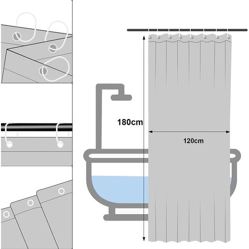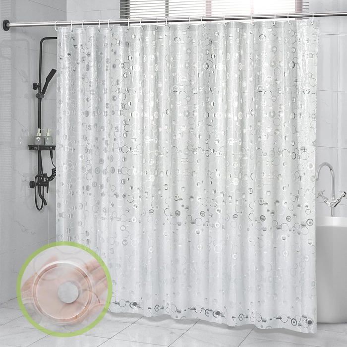 Un paquet contient 1 rideau de douche et 8 crochets de rideau de douche, répondent aux besoins et aux loisirs de vous et de votre famille. Les 2 pièces de plomb en bas maintiennent le rideau de baignoire à la verticale, ne collent pas facilement au corps lors de la douche et empêchent l'eau de s'éclabousser sur le mur de la salle de bain rideau de douche anti-moisissure, tissu en polyester et est élégamment suspendu de haut en bas, qui s'adapte facilement à la décoration. ANTIROUILLE ET DURABLE - Le rideau de bain comprend 8 crochets en plastique, il glisse sans à-coup, il n'y a pas de bruit de grattage lors du glissement, facile à installer et à retirer. Il est recommandé d'utiliser un séchoir pour le sécher. Entretien facile: le rideau de douche peut être lavé dans la machine à laver. Ainsi, vous et votre famille pouvez profiter du temps de douche., Caractéristiques: 1., Le rideau de douche est fabriqué en tissu polyester de haute qualité, l'eau glisse facilement et sèche rapidement., 2., Hook Conception , facile à enlever. Rideau Salle Bain 180x180 Rideau De Douche Transparent 180x180cm - EVA Imperméable - Anti-moisissure Rideau Antistatique Intimité et décor -- Fournit de l'intimité et un attrait décoratif et peut être utilisé comme un rideau autonome. Pas d'odeur,pas de décoloration, longue durée de vie et belle apparence. Ne colle pas: base lestée et tissu épais et de haute qualité, assurez - vous que le rideau de douche ne colle pas au corps pendant la douche. Rideau De Douche 80 X 180 Cm - Anti-Moisissure - En Polyester... Anti Moisissure Salle De Bain Furlinic Rideau De Douche Tissu Anti Moisissure Lavable En Machine Textile Blanc Imperméable Rideaux De Bain Long Pour Baignoire Ou Salle De Bain Avec 12 Anneaux 180x210cm (Nos produits sont livrés avec des crochets pour l'installation, vous n'avez pas besoin de les acheter séparément !, ) 3., Matériau du rideau : cette doublure de rideau de douche écologique est fabriquée en 100 % polyester et est de très haute qualité.