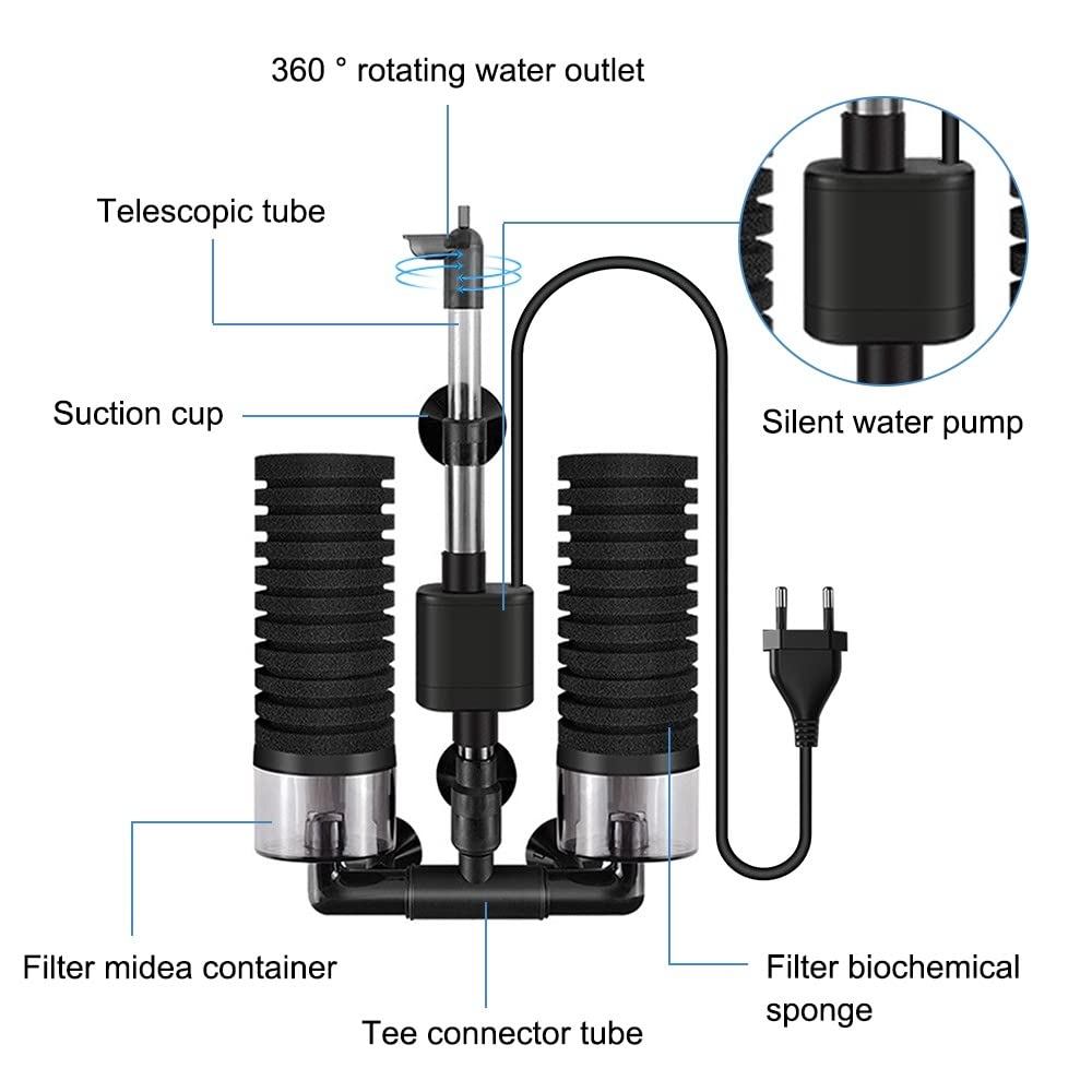 Filtre éponge Aquarium Avis 5PCS Éponge De Filtre De Piscine, Éponge Filtrantes Pour Piscine Noir S Filtre Pompe Aquarium Remarque : remplacez les éponges au maximum tous les 5 à 6 mois Double filtre : filtration physique filtration biochimique, le filtre éponge d'aquarium va nettoyer ces petites particules gênantes dans votre aquarium. Le colis comprend 1 sac de boules en céramique 4 éponges Letnerny-Filtre Éponge Pour Aquarium - Filtre En Mousse Silencieux - Avec Boule Filtrante - Filtre Électrique - Double Éponge - Pour Filtration Biologique Mécanique | À partir de 48,28 € | Comparez les prix avec Zoo Mania Longueur du câble : 1,3 m. Filtre d'aquarium électrique élimine les matières en suspension et les polluants dans l'eau de l'aquarium, assure une qualité d'eau claire, le filtre d'aquarium électrique augmente la teneur en oxygène et nettoie l'environnement en caoutchouc de l'aquarium QUETO Filtre éponge à Double Tête, Filtre D'aquarium Et Filtre Ponge Double T Te Filtre D Aquarium Et Filtre Submersible Silencieux En Ponge Biochimique Le kit de filtre éponge d'aquarium dispose d'une boîte à matériaux filtrants pour placer des matériaux filtrants Le kit de filtre éponge d'aquarium dispose d'une boîte à matériaux filtrants pour placer des matériaux filtrants. Filtre d'aquarium électrique élimine les matières en suspension et les polluants dans l'eau de l'aquarium, assure une qualité d'eau claire, le filtre d'aquarium électrique augmente la teneur en oxygène et nettoie l'environnement en caoutchouc de l'aquarium. Dimensions : 30 x 19 x 7 cm Puissance : 5 W. Spécifications: Matériau : plastique., Couleur : noir. Le filtre éponge d'aquarium sur le filtre éponge est réglable, de sorte que vous pouvez changer la direction du filtre éponge d'aquarium Contenu : 1 matériau filtrant. Convient pour l'eau salée ou l'eau douce : filtre d'aquarium électrique, idéal dans les aquariums de crevettes, poissons ou bassins d'élevage, peut également être utilisé dans n'importe quel autre jardin, hydroponique.