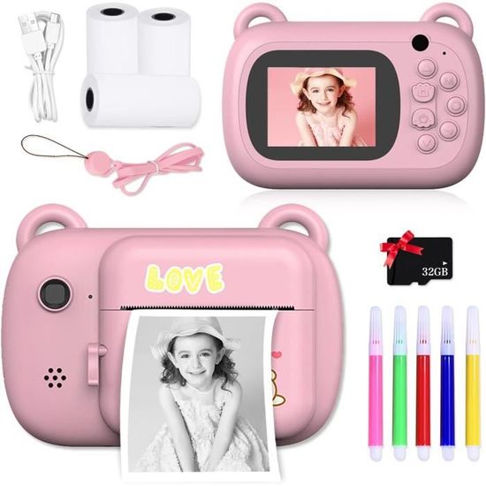 Pour préserver les souvenirs, une sauvegarde régulière sur ordinateur est conseillée. XINGGANG Appareil Photo Enfant, 2.0 Pouces Enfant Appareil Photo Numérique, Mini L'appareil intègre deux modes d'impression (point par point et niveaux de gris), et propose divers effets cartoon. Des crayons de couleur inclus permettent aux enfants de dessiner librement sur les photos, stimulant une imagination sans limites Une dragonne est incluse, permettant aux enfants de le porter facilement et de documenter chaque instant de leur croissance. Comprend des cadres cartoon, filtres colorés et effets miroir pour des usages variés, stimulant la créativité. 🎀【Impression Sans Encre en 1 Seconde】: Cet appareil photo pour enfants utilise la technologie thermique zéro encre, l'impression de photos noir et blanc s'effectue en 1 seconde après déclenchement, tout en enregistrant les photos couleur sur carte SD. Livré avec une carte mémoire de 32 Go, pouvant stocker des milliers de photos. Convient comme cadeau d'anniversaire, Noël, Halloween, Pâques et autres fêtes. Cet appareil photo pour enfants a un design simple et est facile à utiliser, il est spécialement conçu pour les enfants de 3 à 12 ans, leur permettant d'enregistrer facilement les moments forts de leur vie quotidienne. Kit Photo Papier Crayons Couleur NXPZ Appareil Photo Instantané Enfants, Caméra HD 1080P Avec Écran Appareils Photos Numériques Pour Enfants L'appareil intègre deux modes d'impression (point par point et niveaux de gris), et propose divers effets cartoon. Cet appareil photo pour enfants est un compagnon idéal pour stimuler la créativité des enfants et capturer leurs moments précieux au quotidien. Avec son impression sans encre en 1 seconde, sa haute définition et ses fonctionnalités variées, il offre une expérience ludique et éducative 🎀【Appareil Photo Enfant Multifonction】: Utilisation intuitive, fonctionnalités complètes. Compagnon interactif parent-enfant pour capturer les instants précieux de l'enfance. Inclut 3 rouleaux de papier photo pour une impression instantanée des photos. Idéal pour immortaliser fêtes entre amis, sorties scolaires, activités en plein air, retrouvailles entre camarades et voyages en famille. 🎁【Cadeau Idéal pour Enfant】: Conçu pour les 3-12 ans, encourage l'exploration du monde et la documentation du quotidien. 🎀【Grande Capacité de Stockage et Autonomie】: Mémoire interne de 32G stockant des milliers de photos et vidéos. Double objectif prenant en charge l'impression noir et blanc, les images couleur, les vidéos HD 1080p, 4 jeux éducatifs, la photographie en accéléré, etc. Idéal pour capturer des souvenirs précieux comme les rencontres entre amis, les activités scolaires, les voyages en famille.