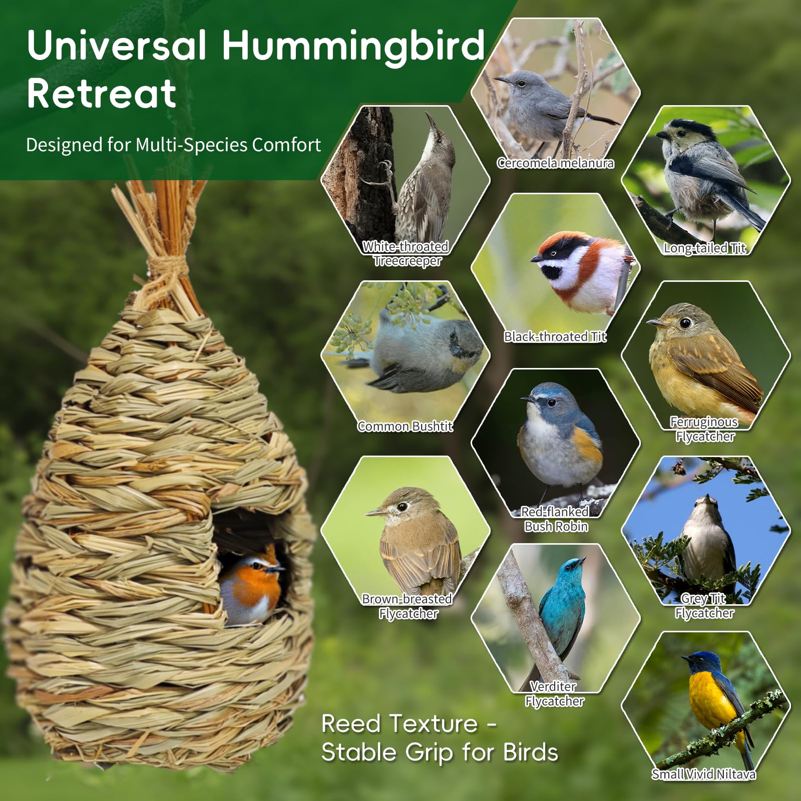 LIEU DE REPOS CONFORTABLE ET MAISON CHAUDE : Vous pouvez accrocher un certain nombre de ces cabanes d' et d'oiseaux autour de votre porche ou de votre jardin pour fournir un abri chaleureux et confortable à votre ami à plumes. EN STOCK : Maison de Colibri extérieure, Accrochez Les Poches de nid d'oiseau Cage de cabane à Oiseaux Naturelle extérieure, MNLX601090842 pas cher. Livraison rapide partout en France Il peut dissiper efficacement la chaleur et évacuer l'eau de pluie en été. Ils aiment venir ici pour se reposer. Les maisons pour colibris ont un fond large afin que les oiseaux aient suffisamment d'espace pour leurs activités. Il offre un endroit abrité et chaud aux oise Matériel: roseau secTaille: environ 11 cm x 13 cm / 4,3 pouces x 5,1 poucesPoids : environ 60GListe de produits :1 * nid d'oiseau tissé à la main à suspendreRemarques :1., En raison des effets d'éclairage et des angles de prise de vue, il existe une différence de couleur dans le produit, veuillez comprendre., 2., En raison de la mesure manuelle, il existe une tolérance dans la taille du produit., Mode d'emploi 0 CORDE DE SUSPENSION: Il y a une corde à suspendre au-dessus de la poche du perchoir, vous pouvez facilement l'accrocher aux branches ou simplement la poser au sol. La cabane à oiseaux est biodégradable, respectueuse de l'environnement, durable et respirante pour que les petits oiseaux puissent y nicher. Spécification:Nom : nid d'oiseau tissé à la main. FIBRES 100 % NATURELLES : Birdhouse est composé de fibres de roseau sec tissées 100 % naturelles. 2 Pièces Nichoirs à Oiseaux Sauvages, Nichoir Oiseaux Exterieur Suspendus, Nid Oiseau Fait à La Main Nid D'oiseau Tissé Maison Oiseaux Adapté Aux Petits Oiseaux Tels Que Les Colibris Maison Oiseau Extérieur Suspendue Maison De Colibri Suspendue - Nid De Colibri Tissé à La Main | Maison D'oiseau Nid Oiseaux Cages Nid Herbe Cabane à Oiseaux Pour - Animalerie Décoration Jardin Naturelle RESPIRANT ET ROBUSTE : La pochette pour nid d'oiseau est tissée à partir d', ce qui la rend serrée et difficile à détacher, respirante et suffisamment robuste pour que les oiseaux puissent se tenir debout et vivre.