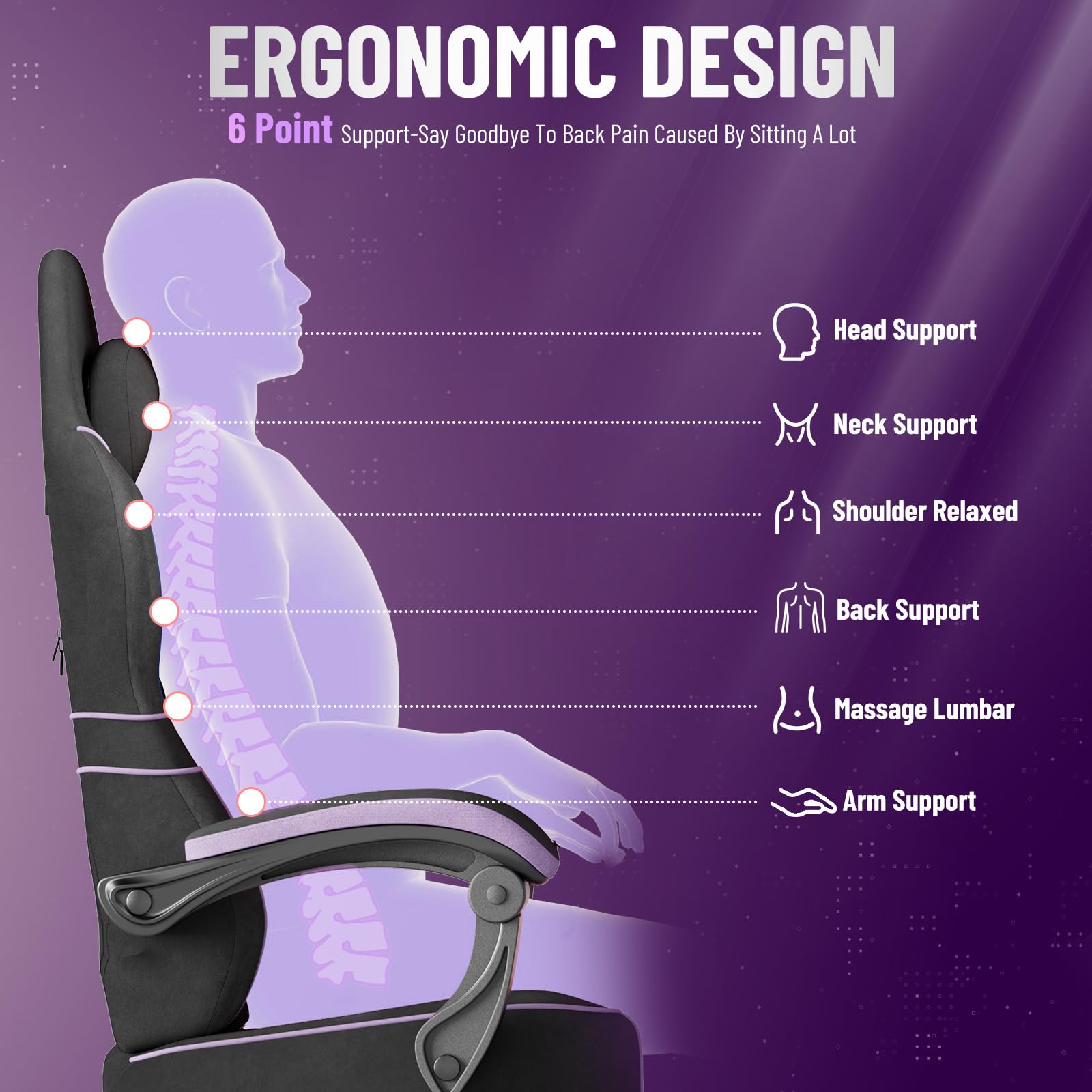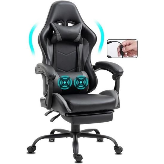 Fauteuil Massant Chaise De Bureau De Gaming - Avec Fonction De Massage Usb - Ergonomique Chaise Confort Pour Streamer Support ultime avec massage et appui-tête. Design élégant et confortable : la chaise de jeu Huracan Son tissu velours velouté et sa fine broderie au feu donnent au fauteuil de jeu un aspect élégant. Le cadre en acier robuste et le pied en métal renforcé supportent en toute sécurité jusqu'à 115 kg. Stable et durable : la chaise de jeu Huracan est équipée d'un cadre en acier renforcé, d'une plaque de dossier épaisse et d'un pied à cinq étoiles en métal robuste (jusqu'à 150 kg de capacité de charge). Facile à installer : la chaise de jeu Huracan est livrée avec des instructions de montage claires (français non garanti) et tous les outils nécessaires – montage en seulement 15 à 20 minutes. Dans la variante avec fonction massage, la chaise se transforme même en une véritable chaise de jeu avec fonction massage pour plus de confort. Chaise de jeu ergonomique : cette chaise de gamer ergonomique est spécialement conçue pour les longues heures de jeu ou de travail. Chaise de jeu Huracan : le confort rencontre le contrôle. Chaise de gaming ergonomique réglable en hauteur - Fauteuil de bureau Design ergonomique avec un confort haut de gamme. Le coussin lombaire avec câble USB se branche sur une source d'alimentation et est idéal pour les longues sessions de jeu ou le travail à domicile. Matériaux de haute qualité - Chaise Gaming en mousse entièrement élastique et en lin, respirant et agréable pour la peau, ne se déformera pas Le matériau en velours respirant est doux pour la peau, résistant à la déchirure et facile d'entretien – conçu pour les sessions de jeu intenses ou les journées de travail concentrées. Avec une hauteur d'assise réglable (3 à 4 pouces), un dossier inclinable de 90 à 135 °, un vérin à gaz en forme de T et un repose-pieds intégré, la chaise s'adapte à toutes les postures. Le matériau respirant, doux pour la peau et résistant aux déchirures assure une sensation d'assise agréable. Stable, sûr et conçu pour tous les joueurs. Les accoudoirs 3D mobiles soutiennent les bras et les épaules de manière synchrone à chaque inclinaison pour une assise ergonomique et détendue pendant des heures. Plus qu'une simple chaise, votre espace de confort personnel Que ce soit pour jouer, travailler ou se détendre, la chaise de jeu Huracan s'adapte à vous, pas l'inverse. Huracan Gaming Chair avec Massage, Chaise de Bureau avec Repose-Pieds, Dossier réglable de 90 à 160°, 360° pivotant, Gaming Chair PC, Chaise Gamer Équipée d'un soutien lombaire massant et d'un appui-tête amovible, la chaise de jeu Huracan assure un confort durable et un soulagement de la colonne vertébrale. Asseyez-vous, asseyez-vous et profitez de la sensation de combiner contrôle total et confort maximal.