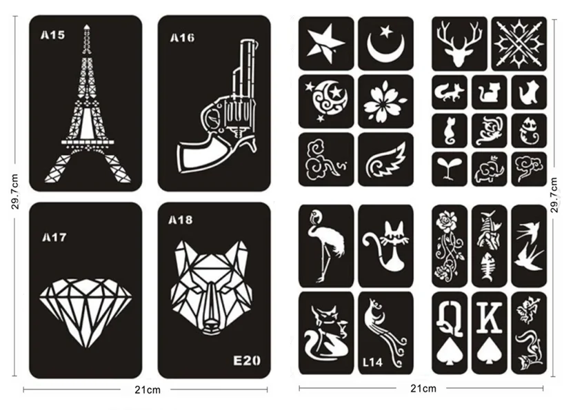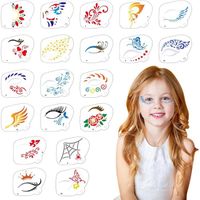 Pochoirs de peinture - MOTHINESSTO - 8pcs - Design humanisé Pochoir Tatouage Pochoir De Peinture De Visage - 7style/Ensemble Ru00e9utilisable Tattoo Painting Modu00e8le Body Art Fleur Maquillage Facial Outils De Conception Pour Les Parties, Nou00ebl, Halloween, Carnavals Et Peinture Visage Enfant Ni trop grands ni trop petits, les pochoirs d'art corporel sont idéaux pour Halloween ou les fêtes d'anniversaire des enfants, les activités scolaires, Noël et d'autres festivals. Kit de peinture faciale pour les enfants Peinture faciale de fête Fournitures de peinture faciale pour enfants Pochoir de tatouage Pochoirs de peinture en papier 38 pcs peinture faciale pochoirs réutilisables Tatouage Peinture Modèles pour enfants Fête de Noël Halloween Maquillage ! Kit de pochoirs pour le visage : Il y a 38 pièces de pochoirs de peinture faciale, 8 pièces de grands pochoirs de peinture faciale réutilisables et 30 pièces de petits pochoirs de peinture faciale pour enfants. Idéal pour le maquillage artistique et le body painting, ce pochoir en mylar est lavable et réutilisable à l'infini. Il est doté d'un trou supplémentaire pour une fixation facile à un porte-clés ou un crochet ; si vous préférez ne pas l'avoir, veuillez l'indiquer lors de votre commande Le kit de pochoirs de peinture faciale réutilisables pour les fêtes comprend des papillons, des fleurs, des plantes, des étoiles, des formes mignonnes, divers motifs de peau d'animaux et d'autres éléments, un total de 38 pièces, un kit souhaitable pour vos projets de peinture faciale. Le kit de pochoirs de peinture faciale réutilisables pour les fêtes comprend des papillons, des fleurs, des plantes, des étoiles, des formes mignonnes, divers motifs de peau d'animaux et d'autres éléments, un total de 38 pièces, un kit souhaitable pour vos projets de peinture faciale Parfait pour Halloween ou les fêtes d'anniversaire d'enfants, pour créer une atmosphère joyeuse. Spécifications: Matériel : PVC souple Taille des grands pochoirs de peinture faciale : Longueur : 6,5 x 4,92 pouces Petits pochoirs pour le maquillage des enfants : 2,76 x 2,95 pouces Convient à un large éventail d’âges : tous Liste de colisage : 8 x grands grands pochoirs de peinture faciale 30 X petits pochoirs de maquillage pour les enfants Caractéristique: 1., Il suffit de tenir fermement ces pochoirs de maquillage sur la peau 2., Tracez doucement le remplissage avec un pinceau ou une éponge., 3., Ensuite, soulevez doucement le modèle pour vous assurer de ne pas tacher le motif et d’avoir une belle peinture faciale