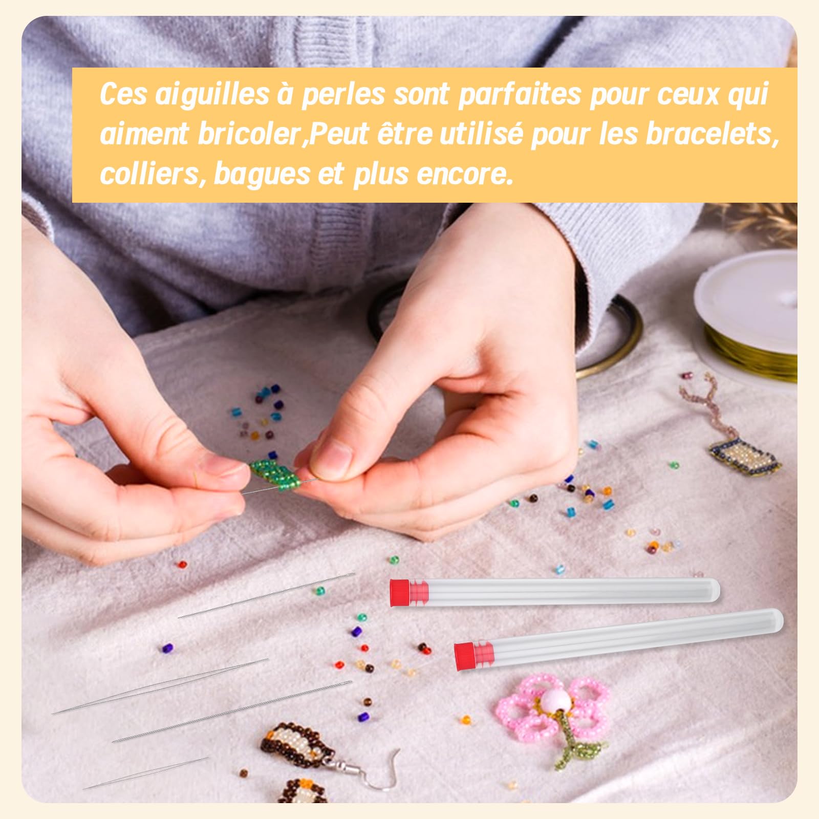 Contenu de la livraison : 18 aiguilles à perles, avec 1 petite paire de ciseaux, dont 3 sont de 4,5 cm, 5,5 cm, 7,5 cm, 10,3 cm, 11,5 cm et 12,5 cm. Il y a six tailles différentes au choix qui peuvent répondre à vos différents besoins 18 pièces + 1 paire de ciseaux et 6 tailles pour la variété : vous recevrez 18 aiguilles à perles (3 pièces de chaque taille : 4,5 cm, 5,5 cm, 7,5 cm, 10,3 cm, 11,5 cm, 12,5 cm) + 1 petit ciseaux. Aiguille Perle Aiguilles Couture Lot De 18 Aiguilles à Perler, 6 Tailles D'aiguilles à Gros Enfile Aiguille Aiguille A Coudre Lot Aiguilles Perlage 6 Tailles Caractéristiques : Couleur : argenté. Facile à utiliser avec un long œillet : chaque aiguille à perles a un œillet super long - Vous gagnez du temps lors de l'enfilage de la corde/du fil, même les fils plus épais glissent en douceur. Cadeau idéal pour le bricolage : le lot d'aiguilles à perles + ciseaux est un excellent cadeau pour les amateurs de bricolage – avec eux, vous pouvez utiliser des produits de bricolage (par exemple Par exemple, des bijoux tricotés) et les offrir comme cadeaux personnalisés à la famille ou aux amis, parfait pour les vacances ou les anniversaires. Les aiguilles à perles peuvent passer de manière flexible à travers des perles de différentes tailles, adaptées à tout travail de perlage. Un excellent costume de perlage, très fin, facile à enfiler, permet d'économiser beaucoup de temps et facilite le travail de perlage Aiguilles à enfiler perles taille 12, robustes et flexibles Taille de l'article : 6 tailles pour aiguilles à perles : 4,5 cm, 5,5 cm, 7,5 cm, 10,3 cm, 11,5 cm, 12,5 cm (3 pièces de chaque taille) ; taille des ciseaux non spécifiée Poids de l'article : non spécifié Taille du paquet : non spécifié Poids du colis : non spécifié Contenu : 18 aiguilles à perles Que ce soit des accessoires simples pour vous-même ou des œuvres individuelles à offrir, ils sont la base d'outils parfaite pour les amateurs de bricolage. Matériau : acier inoxydable.