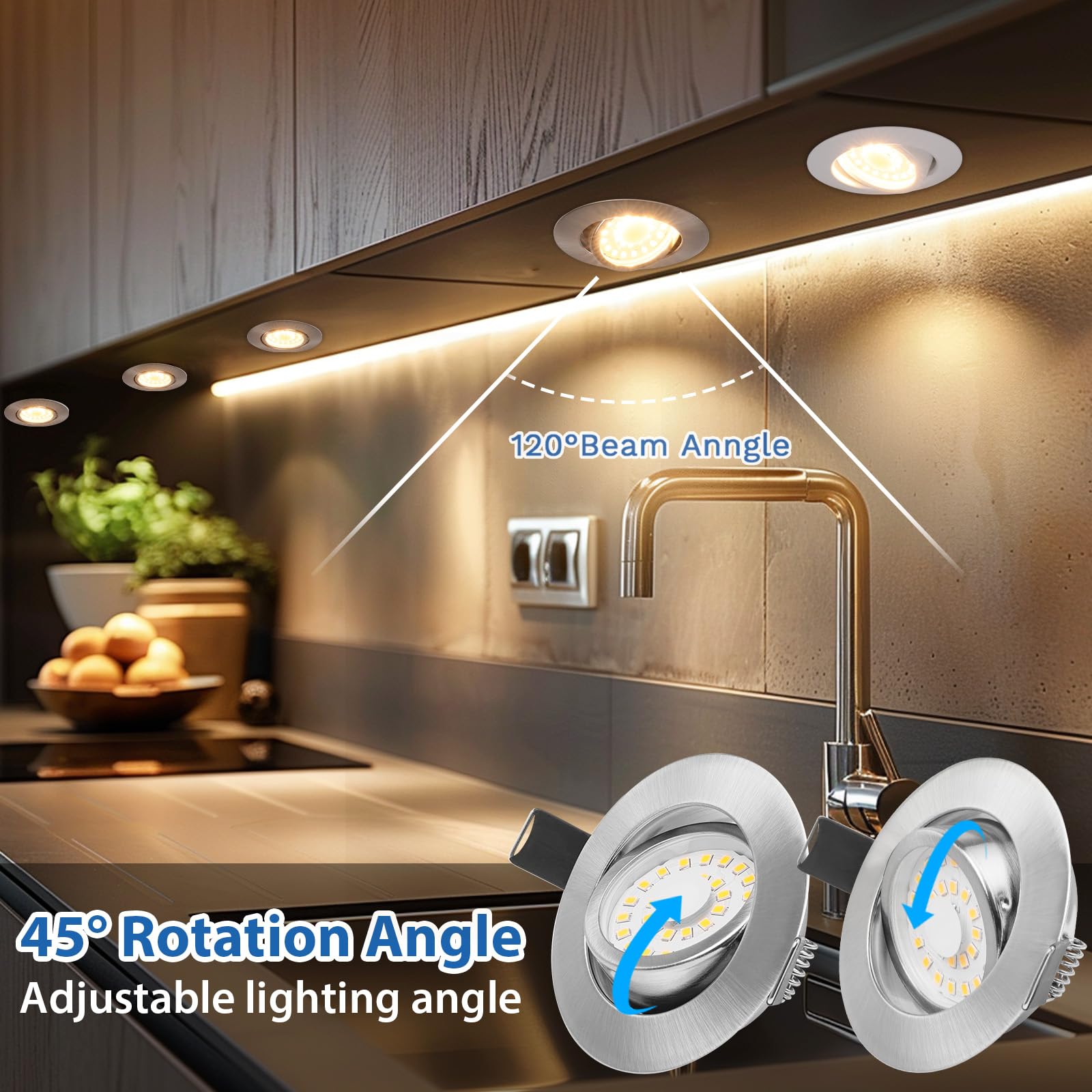 Avec une température de couleur de 3000K, 6W correspondent à des lampes halogènes de 60W. 【Rotation à 45°】Le spot LED encastrable adopte une conception rotative ultra-plate, dont l'angle de rotation à 45° permet de diriger l'éclairage avec précision. Son design, composé d'une peinture blanche en aérosol et d'un abat-jour en verre, rehausse son esthétique, ce qui en fait le choix idéal pour l'éclairage intérieur de votre galerie, chambre, salon, salle de bain, débarras, etc Nous vous répondrons sous 24 heures 【Service client】Notre équipe s'engage à vous offrir la meilleure expérience et le meilleur service client. Spot Led Encastrable Dimmable ALUSSO LIGHTING Spot LED Encastrable, 7W, Dimmable, Blanc Chaud 3000K/Blanc Neutre 4000K/Blanc Froid 6500K Réglable, Spot Plafond Extra Plat 29 Mm, Plafonnier Encastré IP44, Blanc, Lot De 6 L'indice élevé de rendu des couleurs CRI>90 garantit des couleurs vraies et naturelles Si vous rencontrez des problèmes de luminosité ou de luminosité avec vos spots encastrés, n'hésitez pas à nous contacter. Compatible avec les variateurs à thyristor. 【Facile à installer/remplacer la source lumineuse】La spot led encastrable extra plat a une taille de découpe de 65-75mm, une profondeur de montage de seulement 30mm, un diamètre de 85mm, une longueur de câble de 17cm, et un bloc terminal pour une connexion directe à 230V sans transformateur. Spot Led Encastrable Dimmable 230V 7W Spot Plafond 3000K 4000K 6500K Étanche Ip44 Réglable... Nous nous engageons à garantir la qualité de nos lampes et à garantir un service après-vente optimal, afin d'offrir à nos clients la meilleure expérience d'éclairage possible pour illuminer chaque recoin de leur maison et de leur quotidien. 【Luminosité et efficacité énergétique】Le Spot LED utilise 30 perles 2835 SMD et une efficacité énergétique classée E. 【Matériau étanche et sûr IP44】le cadre IP44 du spot encastrable est en acier inoxydable et en PBT, un matériau ignifuge offrant une excellente dissipation thermique, une excellente résistance à la corrosion et à l'oxydation, et une longue durée de vie. 【Intensité variable de 5 à 100 %】La luminosité du spot LED peut être réglée de 5 % à 100 %. Spot LED encastrable GeyouLux dimmable RGB, IP44 Spots de plafond LED orientables: Nos spots de plafond sont conçus pour l'efficacité énergétique et la polyvalence GeyouLux 6x Spot Encastrable GU10 Orientables Aluminium Noir Comparé aux lampes halogènes traditionnelles, nous fournissons un éclairage lumineux et uniforme avec une consommation d'énergie minimale, ce qui permet d'économiser plus de 90% des coûts d'électricité.