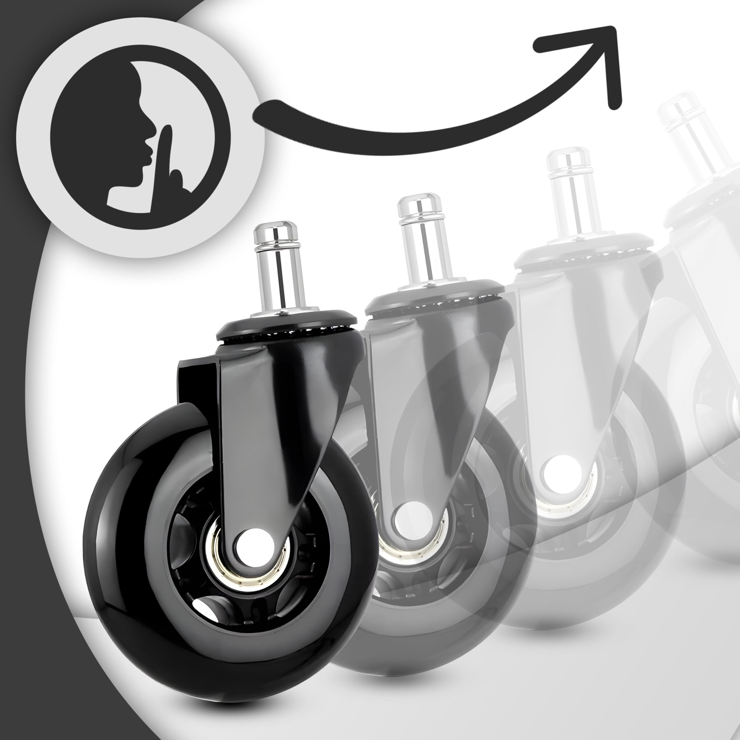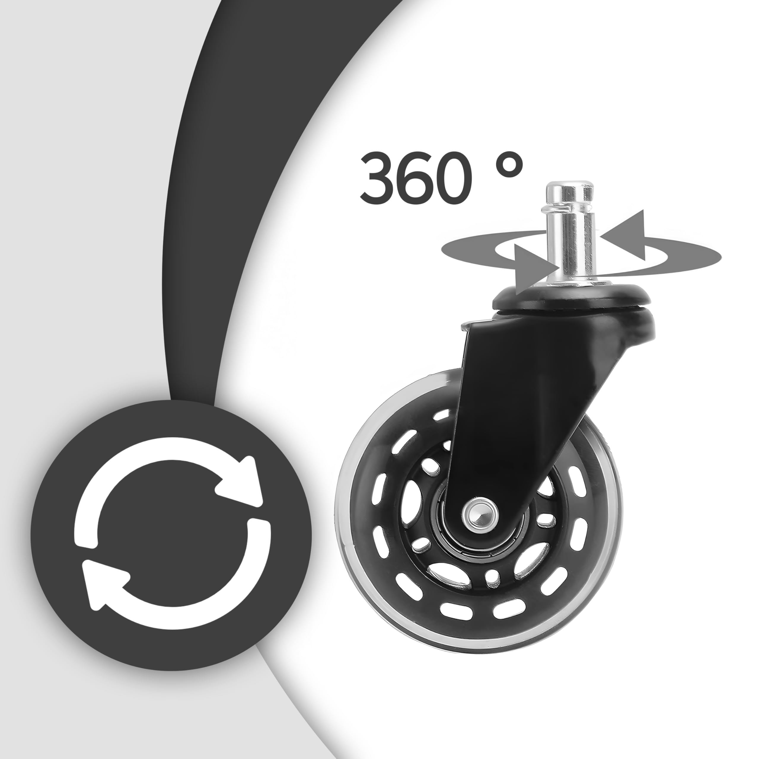 Polyvalent : les roulettes s'adaptent à la plupart des chaises de bureau standard. Avantages du produit : Apparence esthétique : les roues ont un design moderne qui s'adapte à différents styles de décoration. Grâce à la qualité des matériaux de qualité supérieure et aux finitions soignées, il n'y a pas de rayures ou d'autres dommages à la surface. Manuel d'utilisation en allemand (français non garanti)., Emballage d'origine. Lot de 5 roulettes de rechange anti-rayures pour chaises de gaming et chaises pivotantes - Mouvement doux et silencieux - Pour parquet, stratifié et sol en pierre - Montage facile - Compatible universelle Une chaise de bureau confortable et fonctionnelle comprend non seulement une assise ergonomique ou un dossier correspondant, mais aussi des roulettes de haute qualité qui influencent le confort d'utilisation. Cela leur permet de s'adapter facilement à de nombreux modèles disponibles sur le marché. Hauteur de la tige : 20 mm. Ainsi, plus besoin d'acheter des roulettes individuelles séparément, ce qui simplifie le remplacement et garantit une compatibilité totale. Diamètre des roues : 48 mm. Le kit préfabriqué permet une modernisation rapide de la chaise de bureau et garantit sa stabilité et son mouvement fluide sur différentes surfaces sans risque de dommages. Chaise Haute Bureau NOVAATO Roulettes De Chaise De Bureau Par Lot De 5 - Roulettes Silencieuses Pour Sol Dur, Roulettes De Chaise De Bureau Silencieuses Pour Des Sols Sans Rayures - 10 Mm X 22 Roulette Pivotante Les roulettes de chaise de bureau sont fabriquées à partir de matériaux en caoutchouc de haute qualité, qui peuvent protéger tous les sols, tels que les sols en vinyle, les parquets, les tapis, les sols stratifiés et les sols en céramique L'ensemble du processus est terminé en quelques instants. Roulettes Pour Chaise Lot De 4 Roulettes Pivotantes Robustes De 75 Mm... Elles s'adaptent parfaitement aux intérieurs classiques et modernes et garantissent confort et stabilité lorsque vous travaillez sur un bureau. Elles ne laissent aucune trace et vous permettent de vous déplacer confortablement dans votre bureau ou à la maison. Pour de nombreuses surfaces : les roulettes de chaise de bureau conviennent à de nombreux revêtements de sol différents, y compris le parquet, le stratifié, les planches, les carreaux, les tapis et autres surfaces. Roulettes 65 mm parquet c/ chromée chaise bureau. Pack 5 un Largeur des roues : 50 mm., Quantité : 5., Couleur : noir et blanc. Montage facile : le montage des roues est simple et rapide, aucun outil n'est nécessaire. Montage facile : la fixation des roulettes de rechange sur les chaises de jeu est simple et ne nécessite aucun outil. C'est exactement ce que font nos roulettes universelles, elles s'adaptent à la plupart des chaises et vous permettent de moderniser votre chaise de bureau et d'améliorer sa mobilité et sa stabilité.