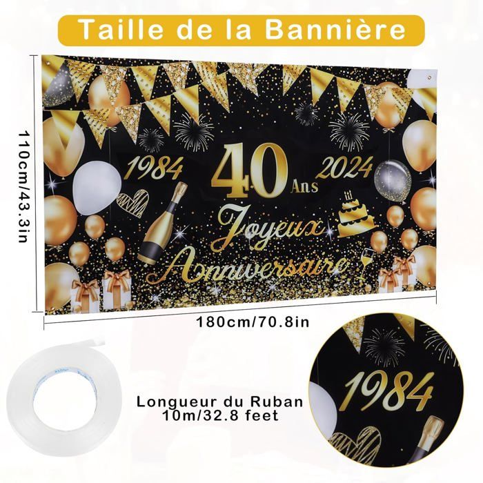 Des serpentins pour le 40ème Anniversaire : notre décoration d'anniversaire dispose d'un design classique et beau noir et doré, c'est le cadeau idéal pour les hommes et les femmes et peut égayer l'atmosphère de chaque fête. 40 Ans Banderole Joyeux Anniversaire, Décoration Anniversaire 40 Pour une ambiance festive et réussie, découvrez notre sélection d'articles de décoration spécialement conçus pour les anniversaires masculins Vous pouvez accrocher des bannières et des spirales aux crèches, murs, fenêtres, arbres et tentes pour créer une atmosphère joyeuse. Facile à utiliser : nos décorations d'anniversaire de 40 ans sont livrées avec des crochets et des rubans en plastique assortis. Vous recherchez une décoration d'anniversaire exceptionnelle pour votre 40ème anniversaire ? a tout ce dont vous avez besoin pour une fête mémorable Ou combinez-les avec d'autres accessoires de fête pour créer une belle toile de fond photo. Décoration d'anniversaire 40 ans pour garçon et fille : vous recevrez 1 guirlande à paillettes « Happy 40th Birthday », 1 guirlande de fanions 40e anniversaire, 6 spirales suspendues pour le 40e anniversaire (2 noires, 2 argentées, 2 dorées). Décoration Murale Fête Adulte Décoration De 40e Anniversaire Pour Hommes Et Femmes, Bannière « Happy 40th Birthday » - Grande Taille Cadeau Homme 40 Ans