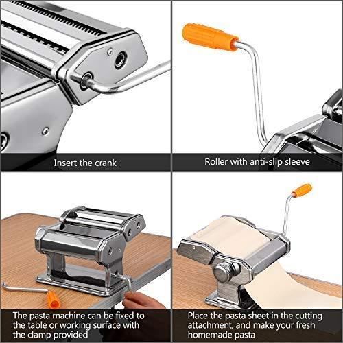Saine et fraîche : Avec la machine à pâtes manuelle, et selon vos goûts, faites vous-même différentes pâtes, comme les nouilles, lasagnes, fettucine, spaghetti, tagliatelles, ravioli, cannelloni ou plaques de lasagnes 【Facile à utiliser】 Epaisseur de 0,5 à 3 mm, convient aux pâtes étroites ou larges. Machine à Pâtes Manuelle En Acier Inoxydable Machine à Pâtes 3 En 1 Avec Construction En Acier Robuste Pour Spaghettis Lasagnes Tagliatelles Rouleuse Avec Pince De Table Pour Une Utilisation En Toute Securite Rouleau Avec Coupe Pates 【Design impeccable】 Produits de haute qualité. Robuste et facile à utiliser sur les machines manuelles. Cet authentique fabricant de nouilles fraîches peut vous apporter une texture et un goût authentiques. Machine manuelle à presser les nouilles en acier inoxydable, deux types de bords de couteau, largeur de nouilles réglable La machine est propre et hygiénique, facile à utiliser, et peut presser des nouilles larges et étroites, des emballages wonton et des feuilles de nouilles Machine à pâtes Manuelle 3 en 1, Machine à pâtes à Rouleaux en Acier 【Réglable】 Roulettes en acier réglables avec boutons de réglage pour différents réglages d'épaisseur. 【Haute qualité】 Design classique, manivelle mobile pratique, facile à ranger. Ce fabricant de nouilles est non seulement attrayant et facile à utiliser, mais également durable.