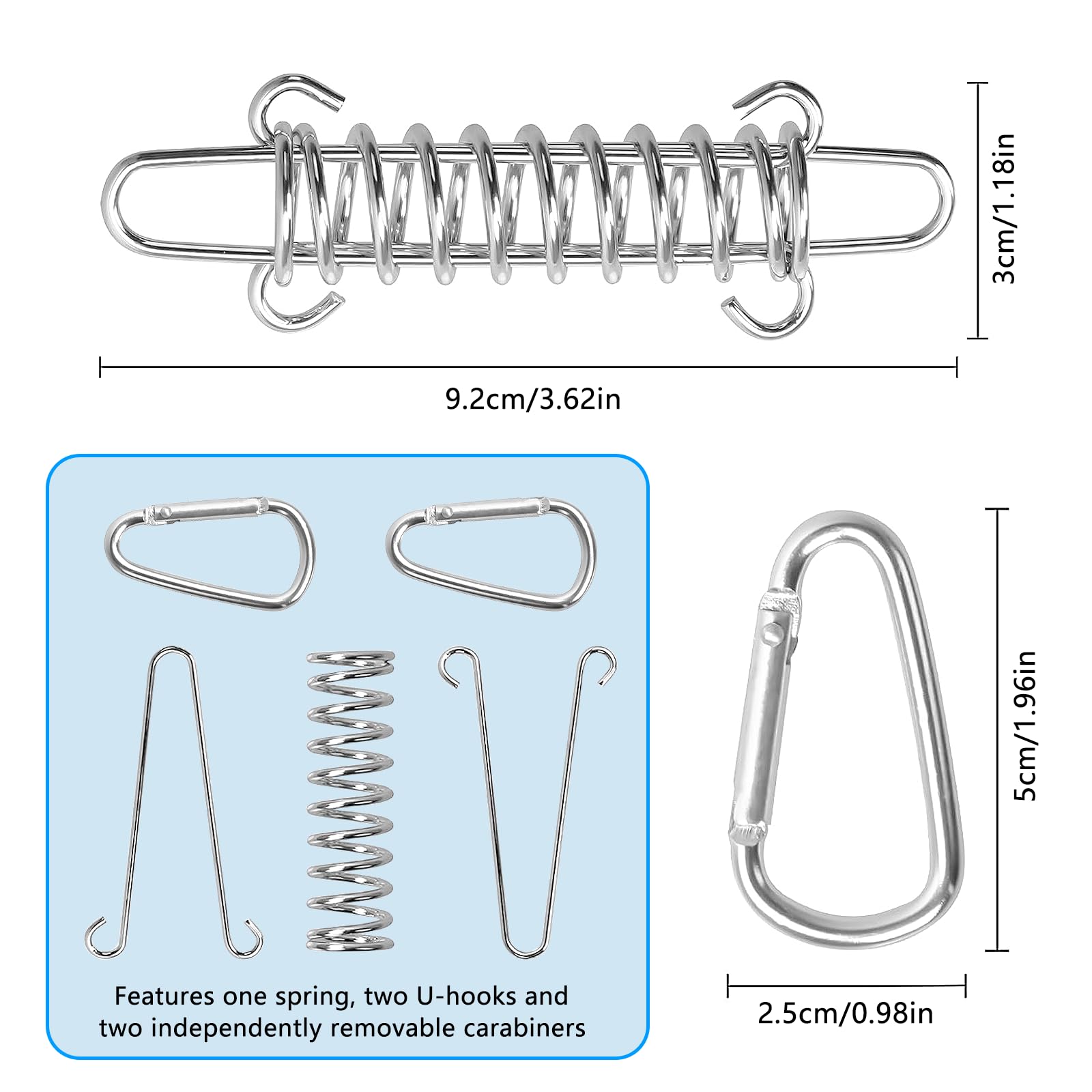 Kit De Fixation Voile D'ombrage, Ensemble De Fixation Pour Auvent Kit Fixation Tente Camping Voile Ombrage Lot 4 Ressorts Traction Acier Inox - Fixation Voile D'ombrage/ Tente - 12cm Mat De Fixation Pour Voile D'ombrage Fixation Voile D'ombrage Anti-vent Geeignet für alle Wetterbedingungen, ist es eine ideale Wahl für Reisen. Die verstärkten Federschnallen sind klein, elegant, leistungsstark und leicht zu tragen. Die verstärkten Federschnallen sind klein, leistungsstark und leicht zu tragen. Ressort de traction en acier inoxydable pour la fixation de voiles d'ombrage concaves, assurant ainsi une tension permanente élastique forte et une protection contre les vents extrêmement violents 【Einfache Installation】 – Befestigen Sie ein Ende der kit fixation voile d'ombrage am Erdungsnagel und das andere Ende am Zelt- oder Markisenseil. Exquisites Design] – Fixation voile d'ombrage eignet sich für Strände und starken Wind. Bei starkem Wind blockieren die Federhaken den Wind effektiv und verhindern, dass das Zelt durch starken Wind beschädigt wird Die Zugfeder mit Ösen ist einfach zu installieren und lässt sich ohne zusätzliches Werkzeug schnell befestigen. 【Exquisites Design】 – Fixation voile d'ombrage eignet sich für Strände und starken Wind.