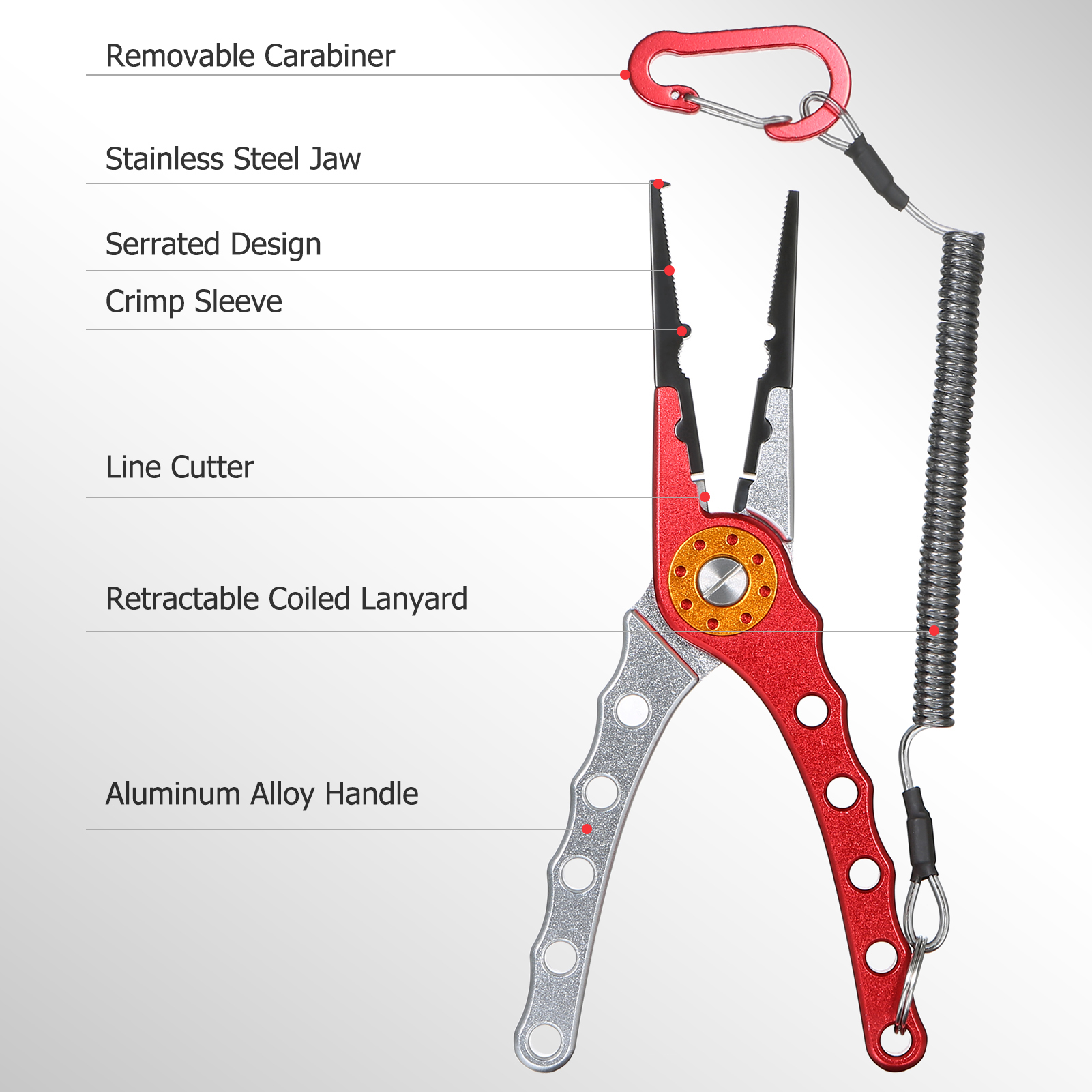 ☽Polyvalent : ces pinces de pêche conviennent pour couper du fil de pêche et ont une conception polyvalente qui les rend parfaites pour divers besoins de coupe de fil. Pince de pêche, Kit de manchons à sertir, pince de pêche en eau salée, simple/Double baril, fil de cuivre, manchon de sertissage, ensemble d'outils de pêche Présentation de notre pince à bec effilé de pêche, fabriquée en acier tungstène et conçue pour une utilisation en extérieur comme le camping et la randonnée. Idéal pour les activités de plein air comme le camping, la randonnée et autres occasions où des fils doivent être coupés. ☽Contrôle amélioré : dotée d'une texture antidérapante et d'une poignée en alliage d'aluminium, ces pinces ne glissent pas facilement, une poignée confortable qui évite la fatigue lors d'une utilisation à long terme. ☽Révolutionnez l'expérience de pêche : la pince de pêche à automatique en eau salée garantit une utilisation sans effort et efficace. Spécification:Nom du produit : pince de pêche en eau salée. Lot de 3 pinces de pêche et ensemble de pinces de pêche, ciseaux de pêche, dissolvant Sa conception audacieuse et solide garantit une efficacité et une précision durables, ce qui en fait l'outil parfait pour les amateurs de pêche en eau salée. Assez petites pour être transportées mais suffisamment puissantes pour manipuler les poissons coriaces, ces pinces sont un incontournable pour tout pêcheur. Outil polyvalent léger et facile à transporter. Kit complet : le paquet se compose d'une pince de pêche, d'une pince à lèvres de poisson, d'un cordon et d'un sac de rangement, après une technologie de production sophistiquée pour une efficacité élevée et une performance stable Pince Bec Effilé Camping Kit De Pinces De Pêche, Pinces à Nez Aiguille De Pêche Meilleur Pince ☽Performances de pêche améliorées : simplifiez votre pêche en plein air.