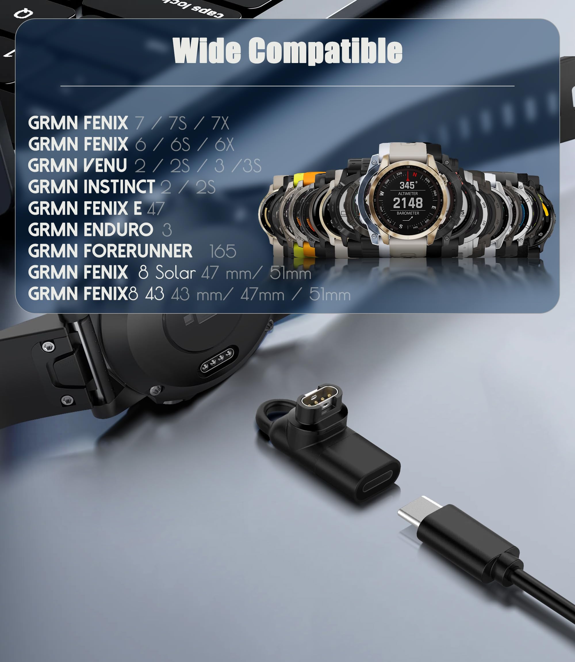 CÂBLE USB CHARGEUR DE BATTERIE ALIMENTATION POUR Philips Norelco One Garmin Forerunner 55 Chargeur De Montre Intelligente Pour Garmin Fenix 6S 6 5 Plus 5X Vivoactive 3 Fiche Technique Et Chargeur Garmin Fenix 7 【Large Compatibilité】Notre câble de chargeur 2 en 1 pour montre Garmin est compatible avec la série Garmin Fenix, la série Forerunner, la série Vivoactive, la série Approach, la série D2, la série Enduro, la série Venu, la série Epix, la série Instinct, et plus encore. Compatible avec la plupart des appareils, il est idéal pour les voyages et l'utilisation quotidienne. 【Design en L-förmiges】Le connecteur à angle droit à 90° maintient votre montre à plat pendant la charge. Le câble de charge 2 en 1 pour montre Garmin de la marque KAL est conçu pour offrir une solution de recharge pratique et efficace. Équipé d'un connecteur USB-A et USB-C, ce câble répond à tous vos besoins de charge, que ce soit à la maison ou en déplacement 【Chargement Sécurisé】Le chargeur pour montre Garmin est doté d'un régulateur de tension intégré qui protège votre montre des surintensités lorsqu'elle est connectée à une source d'alimentation. Connecteur de Charge 2 en 1]Ce câble de charge pour Garmin intègre un port USB-A et un port USB-C, offrant une solution double pour répondre à tous vos besoins de recharge Léger, il se glisse facilement dans votre sac pour une recharge en déplacement. Profitez d'un confort optimal avec un seul câble.