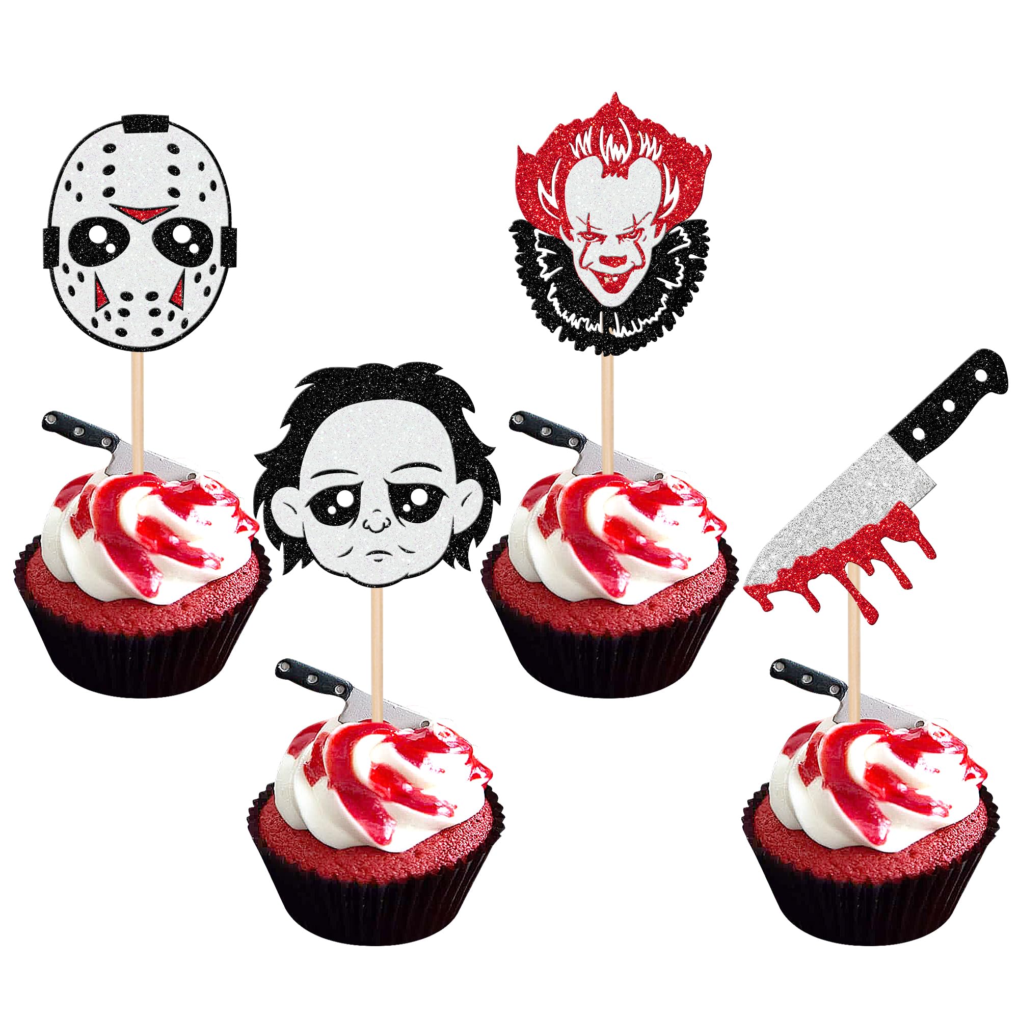 Prêt à l’Emploi : Aucun assemblage nécessaire ! Serre-tête couteau ensanglanté | Accessoire Halloween réaliste Fabriqués en carton pailleté 300 g/m² de qualité supérieure, ces toppers scintillent sous les lumières de fête et ajoutent un côté effrayant mais amusant à toutes vos célébrations. Chaque topper est pré-monté, il suffit de l’insérer dans vos cupcakes ou desserts pour une décoration rapide et élégante. Décorez cupcakes, gâteaux, biscuits, fruits ou glaces pour une ambiance immédiatement effrayante. Quantité Suffisante : Comprend 24 toppers pour cupcakes avec 2 designs effrayants (12 pcs chacun). Parfaits pour Halloween, anniversaires à thème tueur, soirées films d’horreur ou tout événement effrayant, ces toppers rendront vos desserts inoubliables et impressionneront vos invités. Cupcake Halloween: 30 doçuras assustadoras - Bolo Guaraná Brille magnifiquement sous les lumières de fête. Avec 24 toppers pré-montés dans 2 designs inspirés de l’horreur, la décoration est facile et rapide — il suffit de les insérer dans vos cupcakes, gâteaux, biscuits ou fruits pour un effet instantané. Carton Pailleté de Haute Qualité : Fabriqué en carton pailleté 300 g/m², durable, non décolorant et avec des bords lisses. Couteau ensanglanté halloween Déco Fête Horreur 24PCS Topper Cupcake Halloween – Piques Gâteau Couteau Piques Cupcakes Couteau Ensanglanté Taille Parfaite : Chaque topper mesure env.